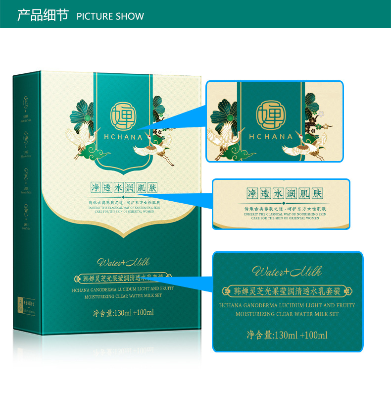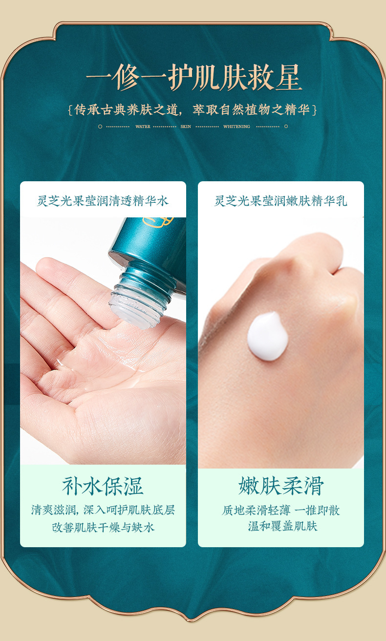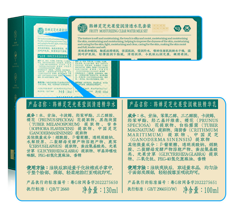 韓嬋靈芝光果瑩潤清透精華水+精華乳 保濕滋潤水乳兩件套面部套盒