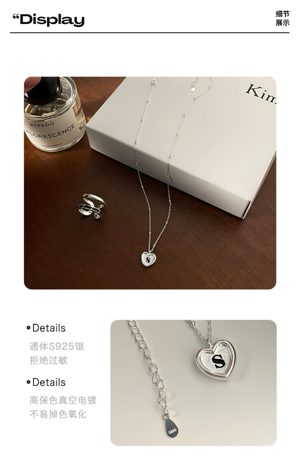 s925純銀愛心字母吊墜女韓版鎖骨鏈