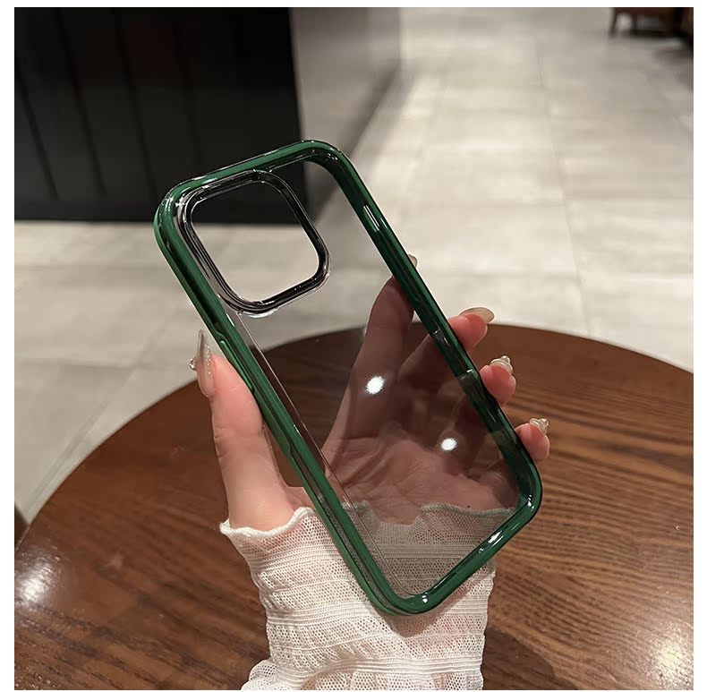umj 【撞色皮紋軟邊】簡約透明亞克力適用于iphone14新款蘋果14proMax手機殼13高級感pro大孔鏡頭保護套男女