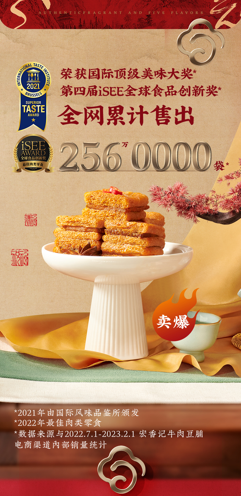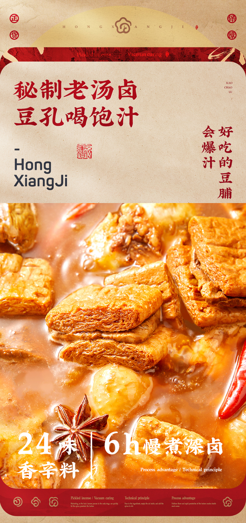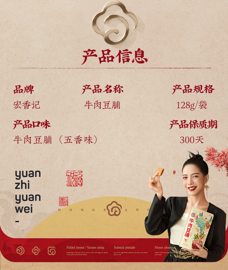 湊單 宏香記牛肉夾心五香鹵汁豆脯鹵味休閑小零食128g