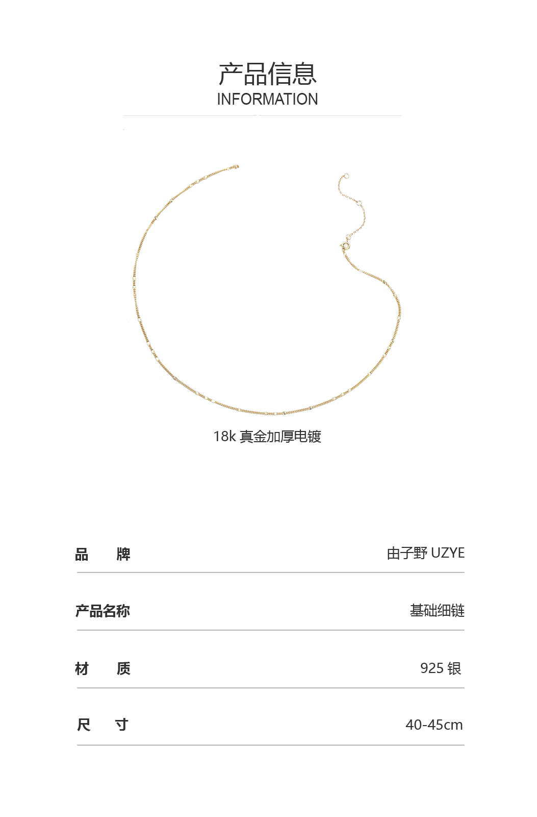 由子野丨原創925銀鍍18K真金基礎十字鏈女秋季小眾搭配裸鏈項鏈潮
