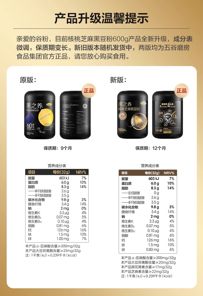 五谷磨房黑之養核桃芝麻黑豆粉椰椰口味500g沖飲早餐黑米奇亞籽