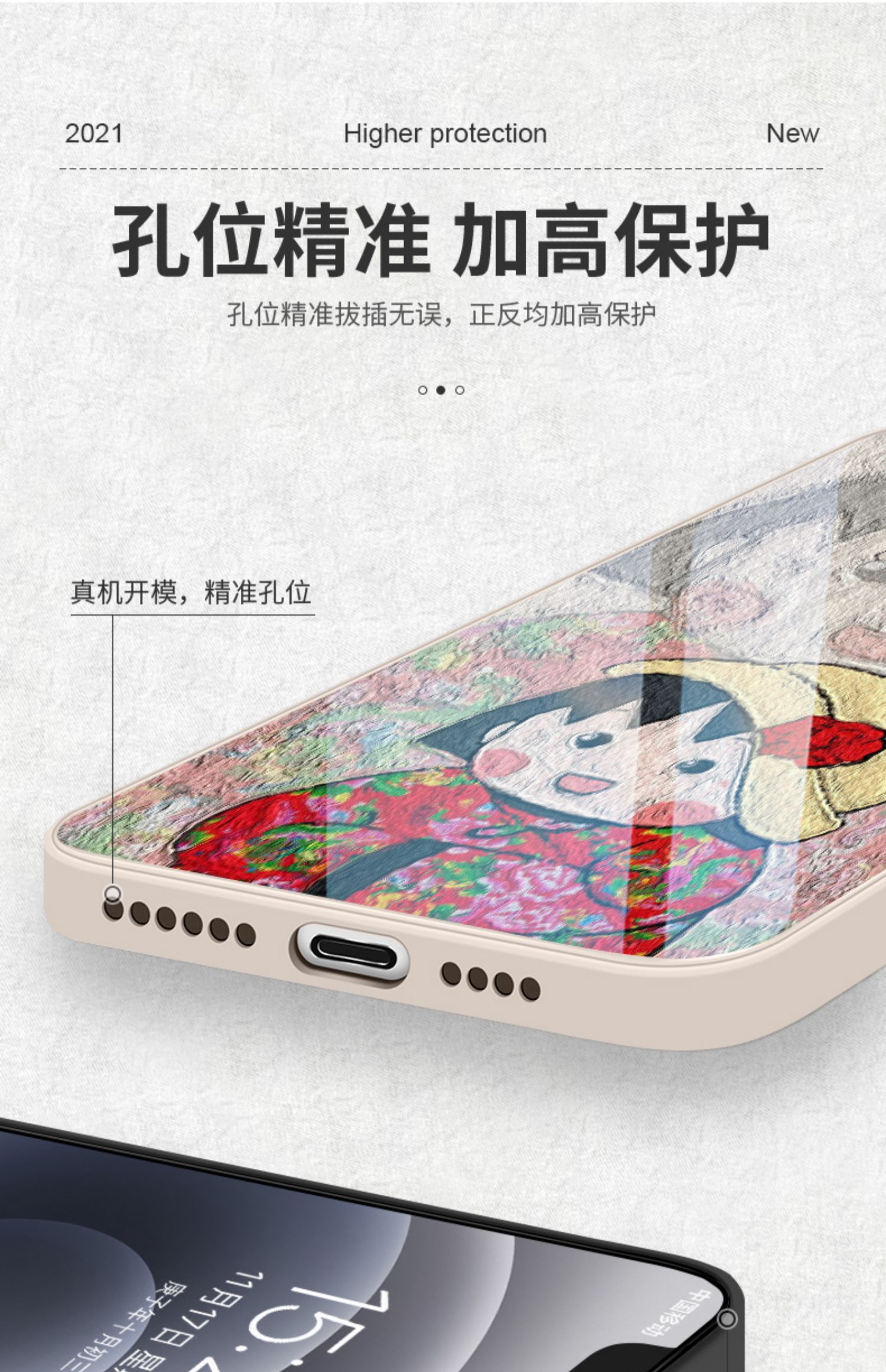 適用于蘋果15多巴胺玻璃手機殼華為nova10小眾藝術opporeno創意個性榮耀90pro防摔小米13pro硬殼vivo粉色女款