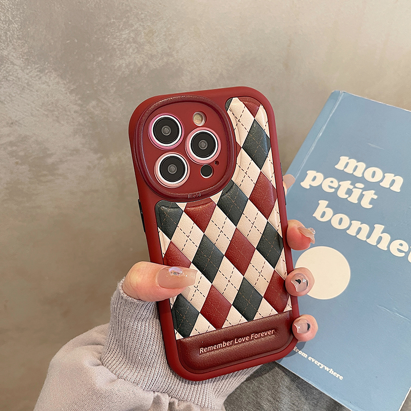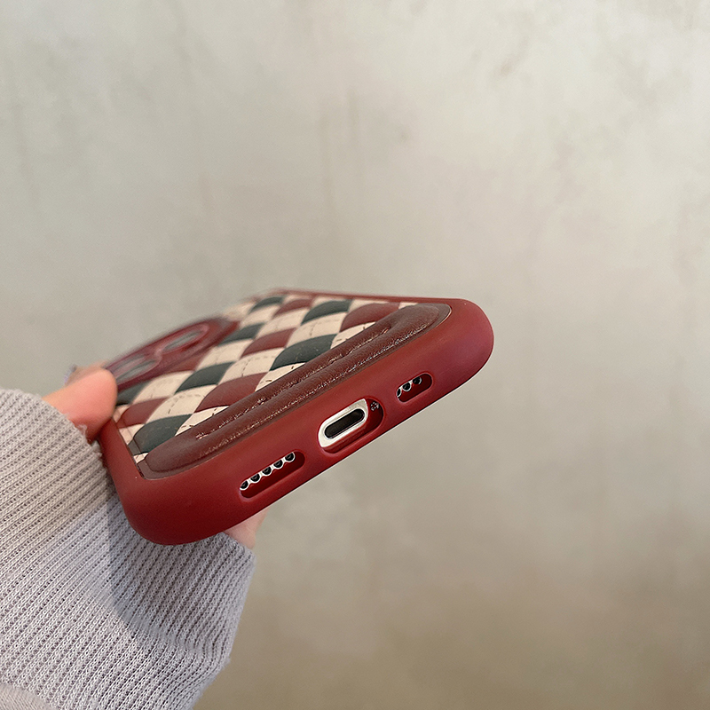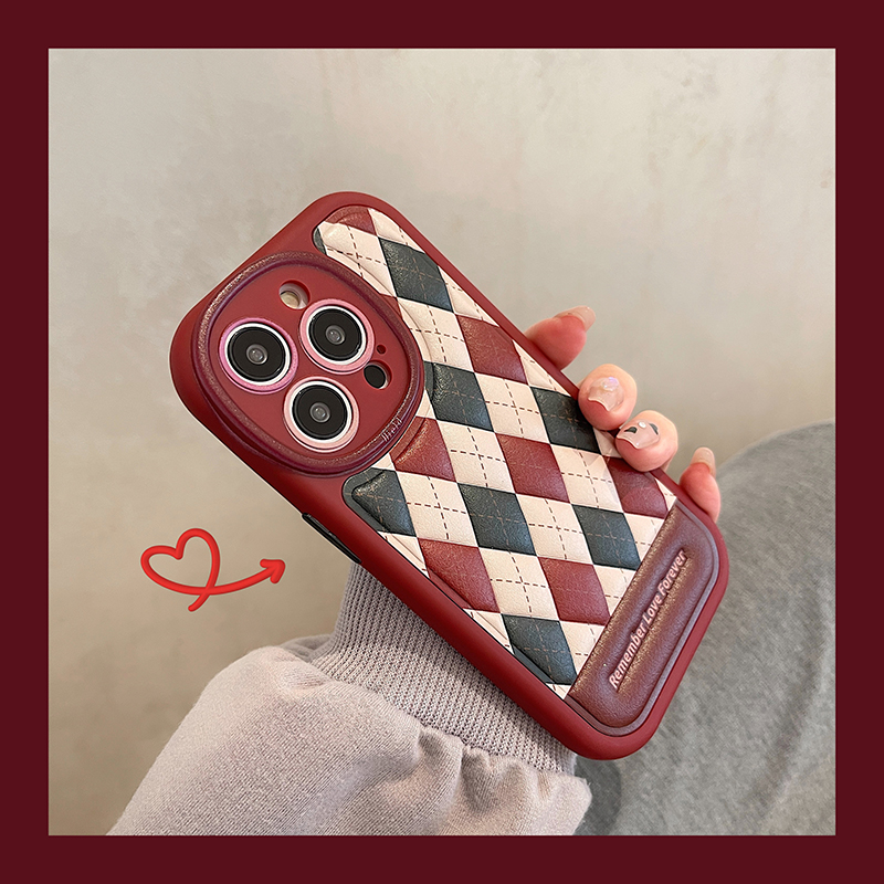 新年喜慶酒紅色菱格紋適用蘋果iphone14手機殼13pro小眾高級感12promax秋冬暖手11簡約max新款plus網紅保護套