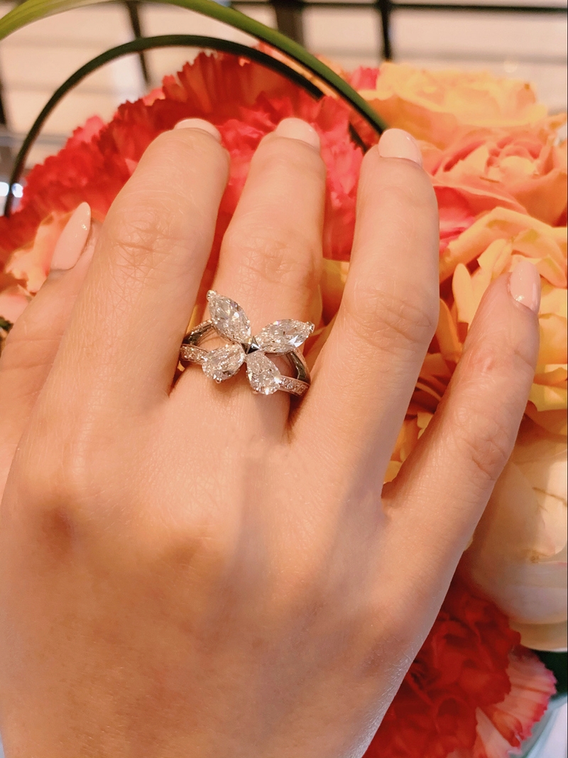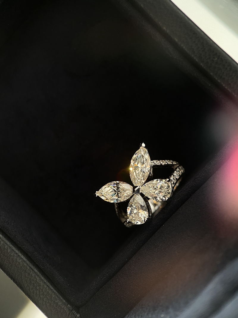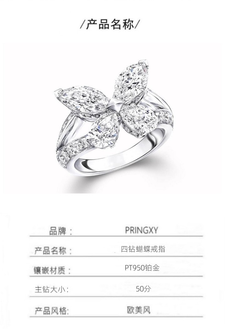新品PT950鉑金進口D色莫桑石蝴蝶戒指滿鉆不掉色歐美輕奢指環女