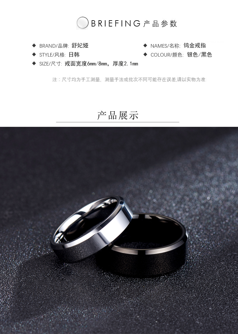 鏡面黑色鎢金戒指男潮牌單身高街男設計感潮流個性男款男士高級感