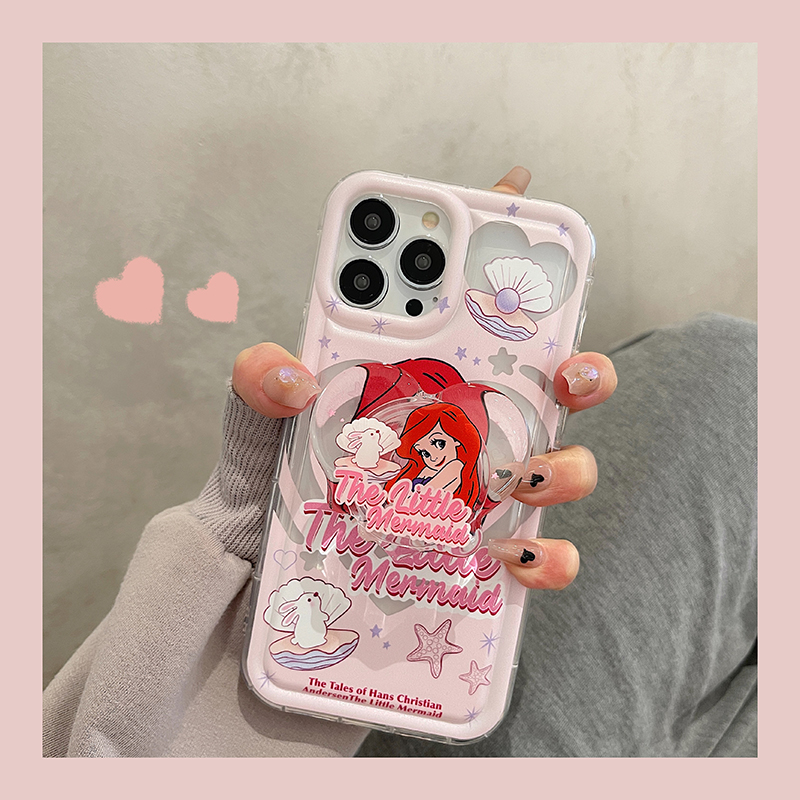 卡通可愛美人魚公主帶支架適用蘋果14promax手機殼iphone13pro創意12網紅11小眾高級感max防摔plus新款保護套