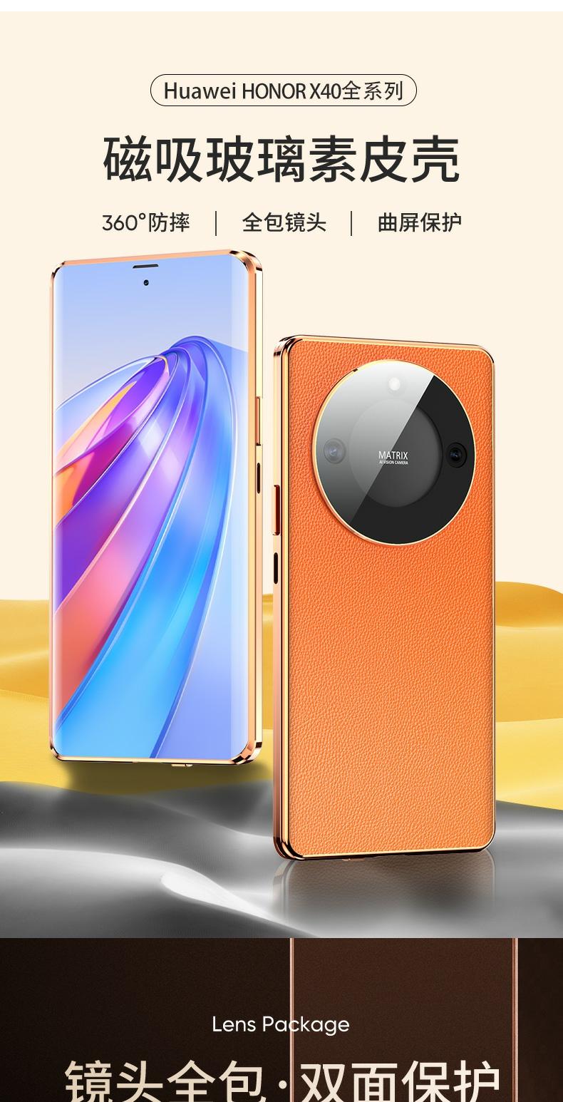 適用于榮耀X40手機殼鏡頭全包x40i雙面玻璃防摔保護套X40GT新款磁吸外殼全包邊素皮防窺曲屏金屬殼潮抖音同款