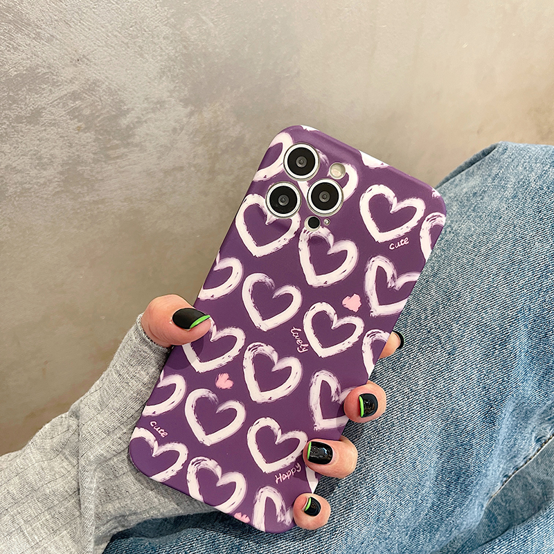 韓風ins涂鴉紫色油畫愛心適用蘋果iphone14手機殼13pro個性小眾12promax磨砂11新款max簡約高級感plus保護套