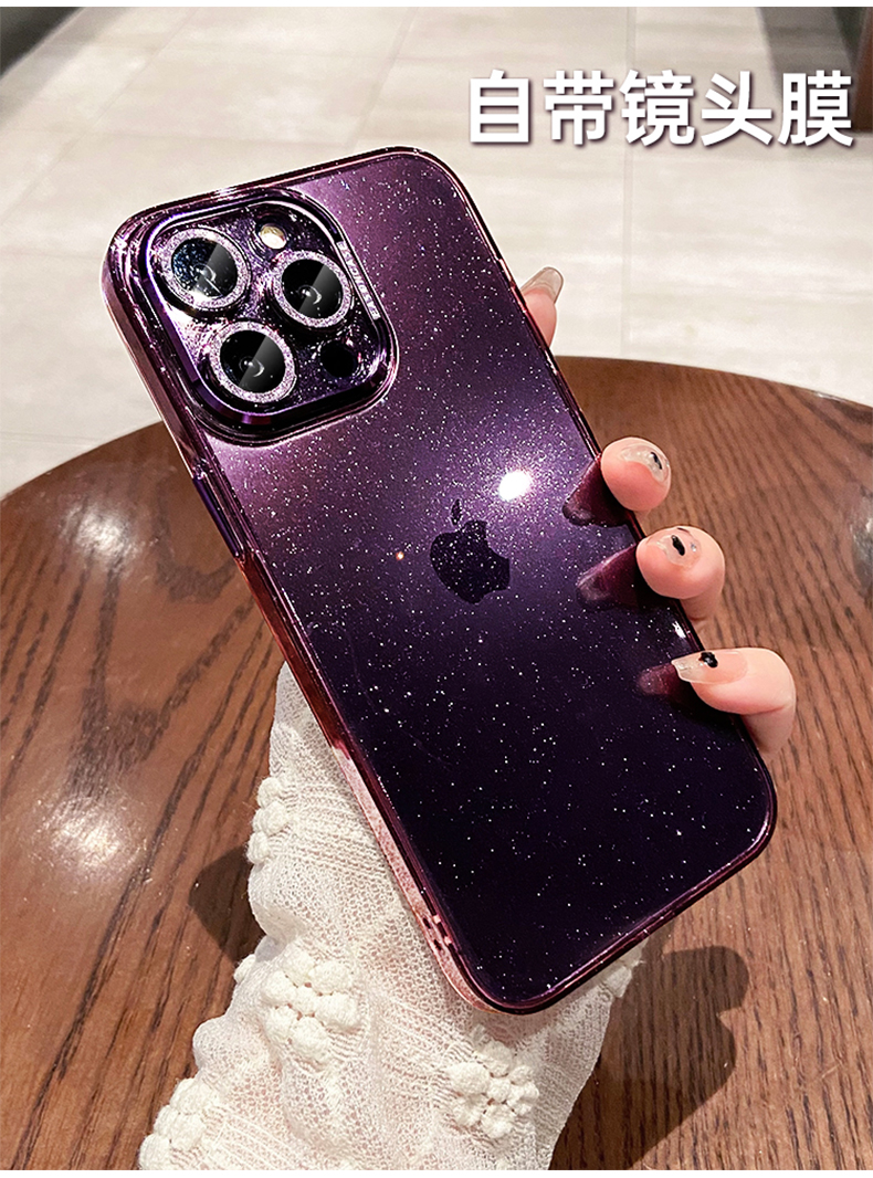 紫色漸變閃粉適用蘋果14promax手機殼iphone13新款12/11pro自帶鏡頭膜xsmax女xr軟硅膠7/8plus全包mini個性6s