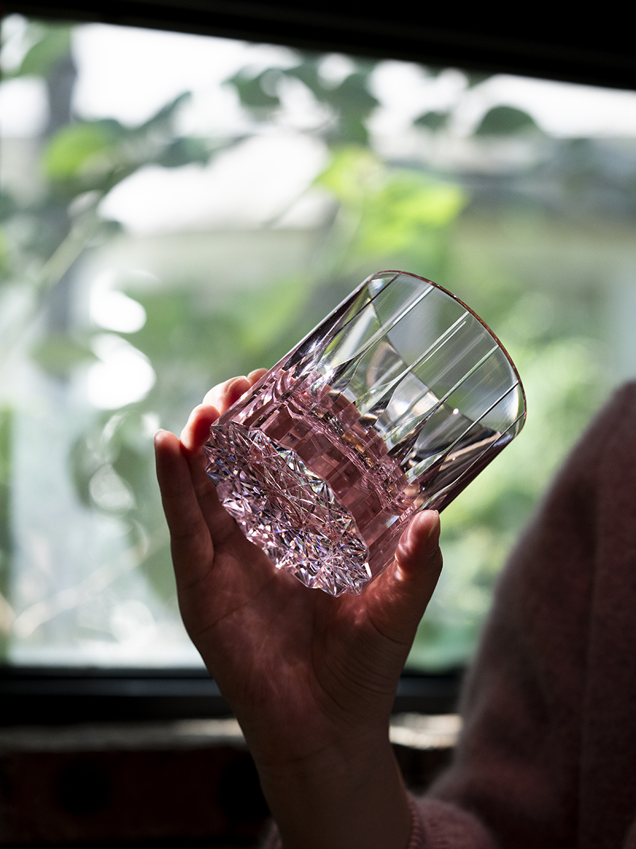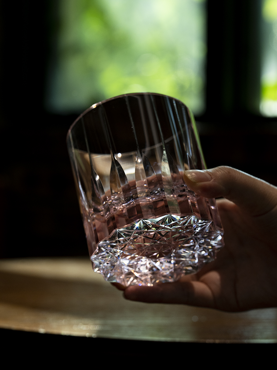 如鉆日式江戶切子威士忌酒杯K9粉色水晶杯玻璃洋酒杯子手工雕刻花