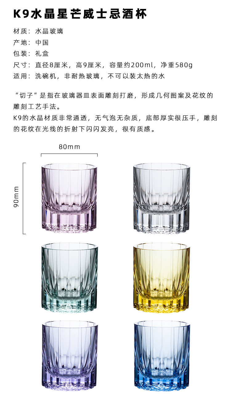 星辰威士忌酒杯K9無鉛水晶杯輕奢高端洋酒杯手工江戶切子杯禮盒裝