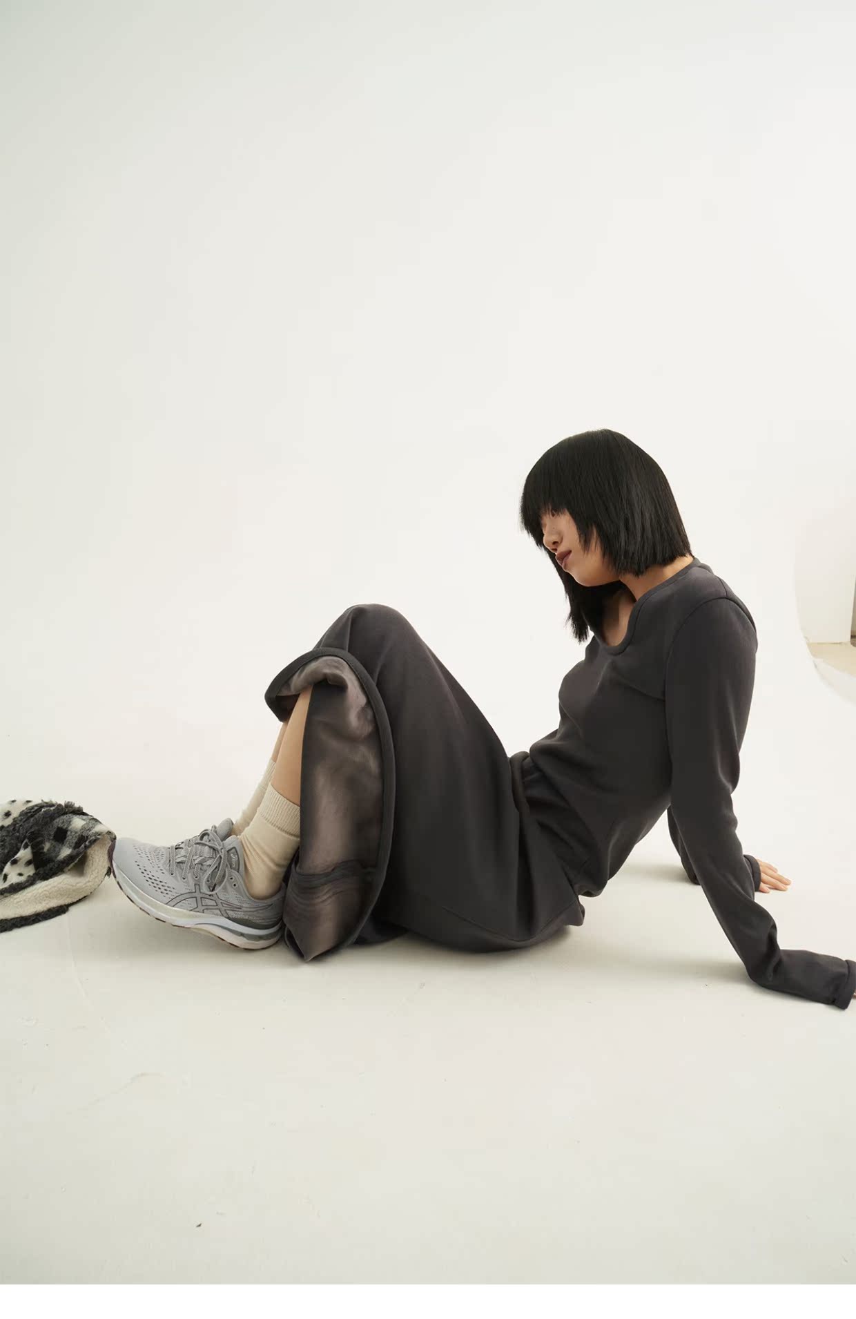 TiaTia原創設計 23Fall/米白針織不對稱拼接百褶不規則長款連衣裙