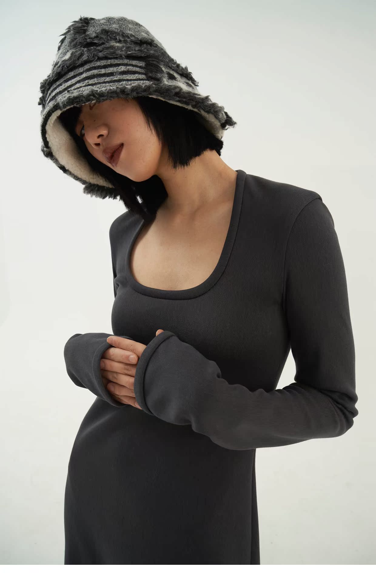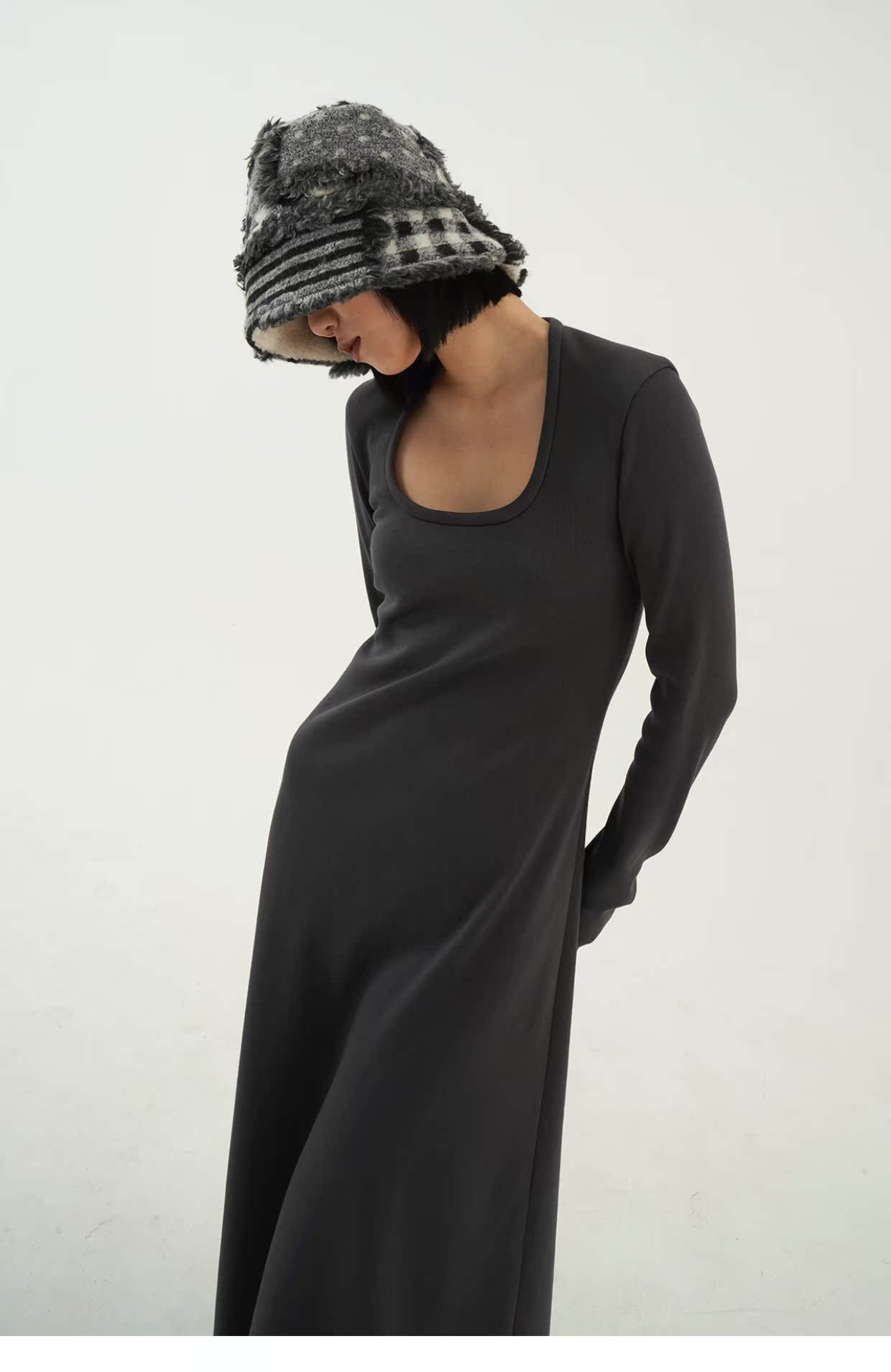 殷三吉/THREE GOOOD魅惑佳人小眾設計優雅掛脖長袖連衣裙SQ230706