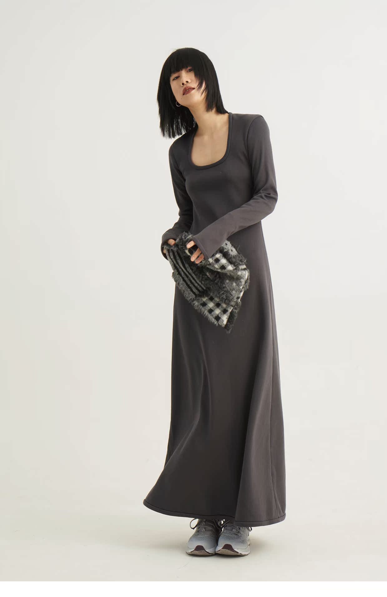 TiaTia2022/冬新品一件搞定時裝休閑彈力加絨加厚衛衣長連衣裙