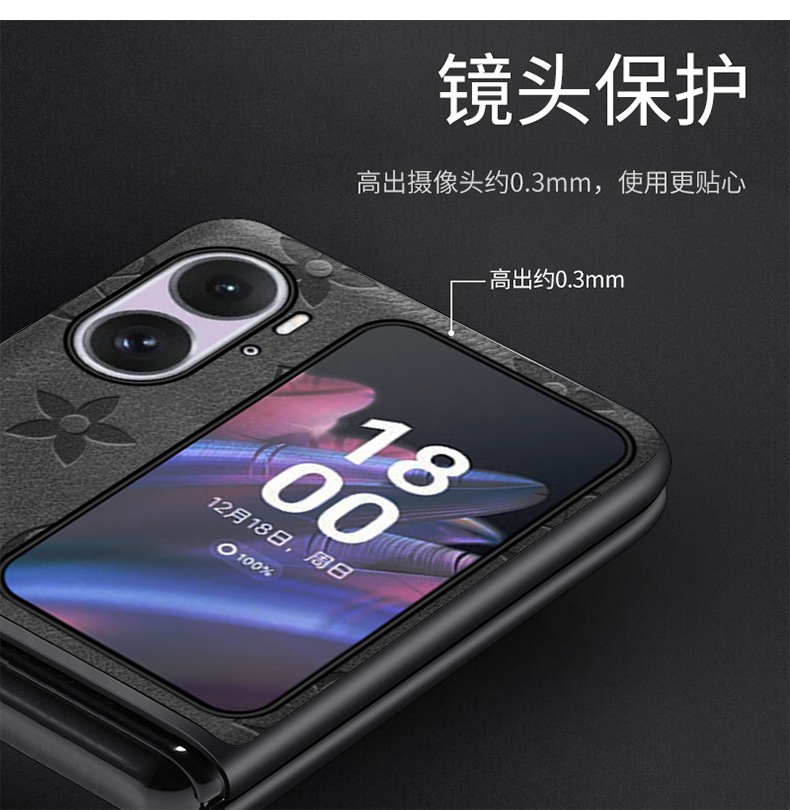 適用于OPPO Find N2 Flip手機殼高級感印花findn2flip折疊屏奢華硬殼皮紋殼OPPOFindN3Flip防摔保護套外殼