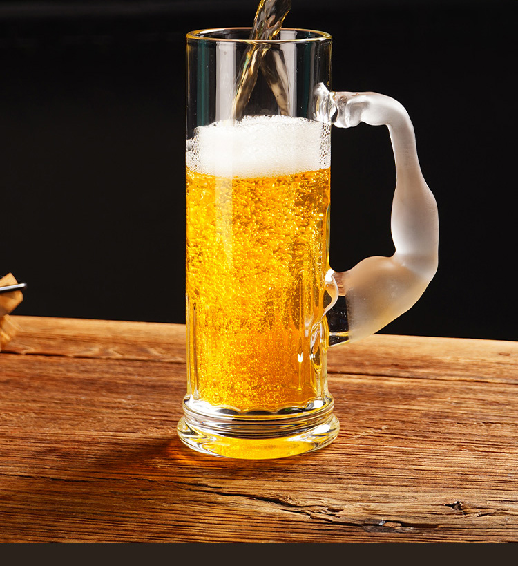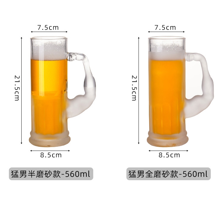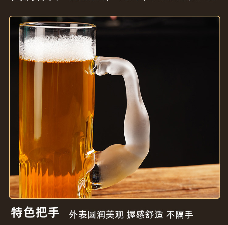 大力士肌肉磨砂啤酒杯帶把精釀扎啤杯大容量小眾高顏值果汁咖啡