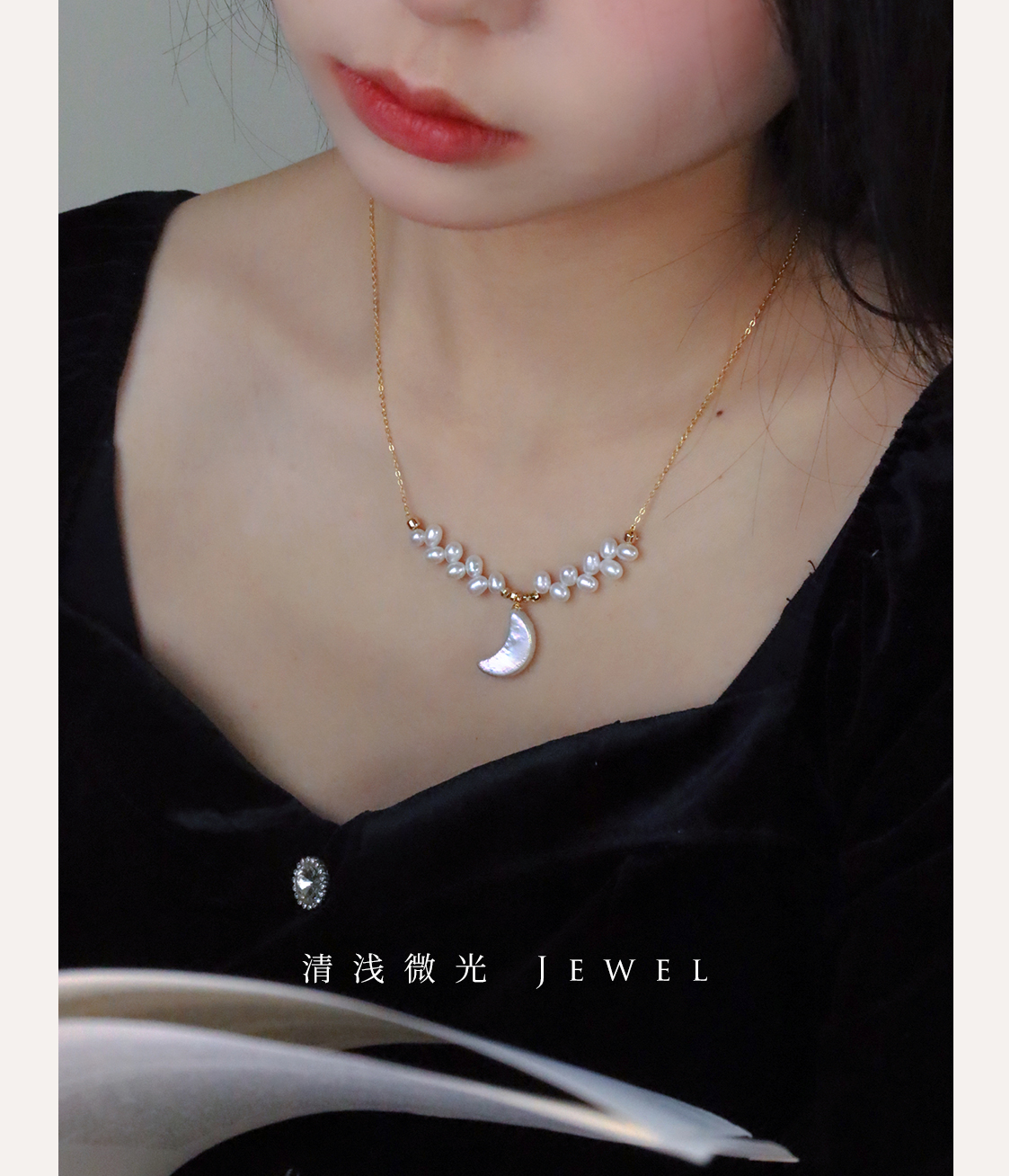 清淺微光丨2023新款月夜s925銀天然珍珠貝母月亮項鏈女簡約ins風