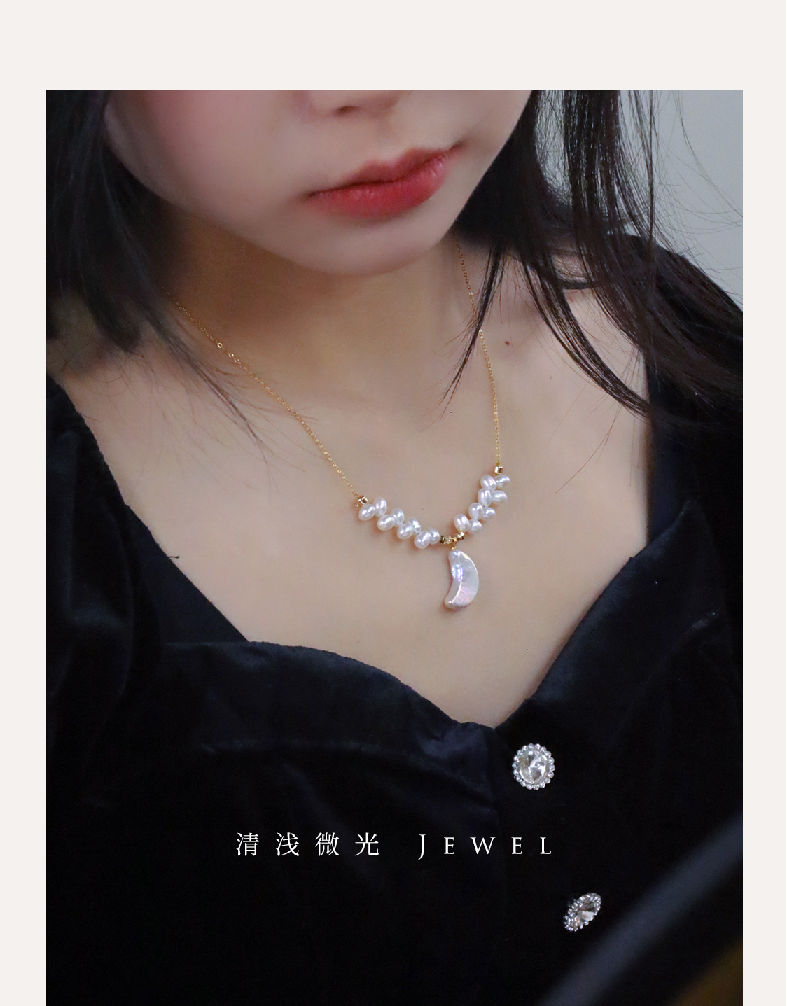 S925純銀淡水珍珠月亮吊墜項鏈小眾韓系ins輕奢精致設計感鎖骨鏈