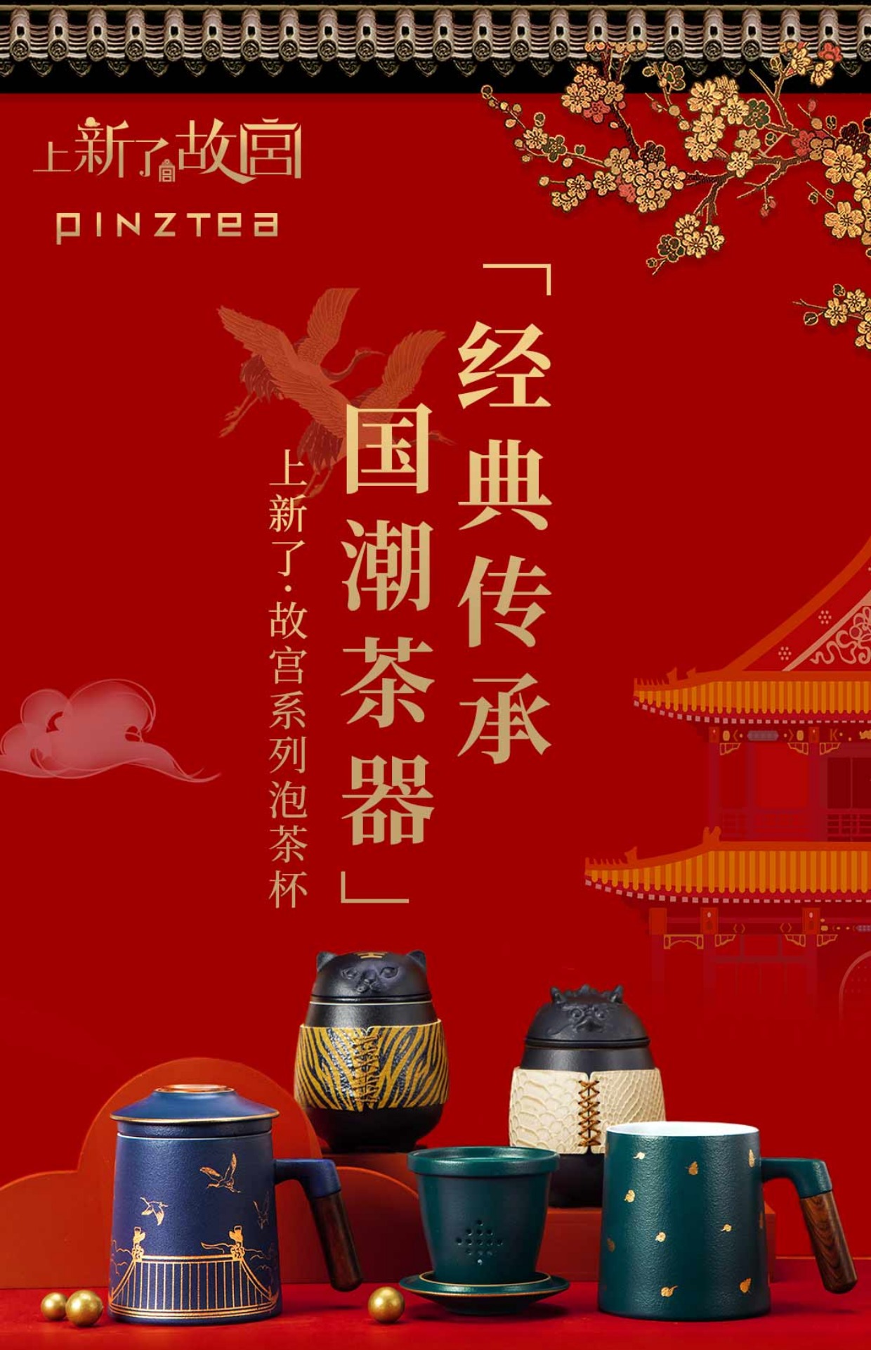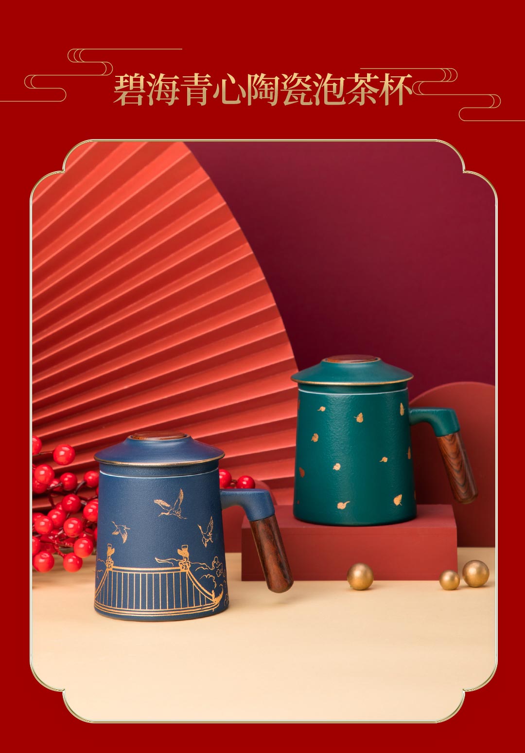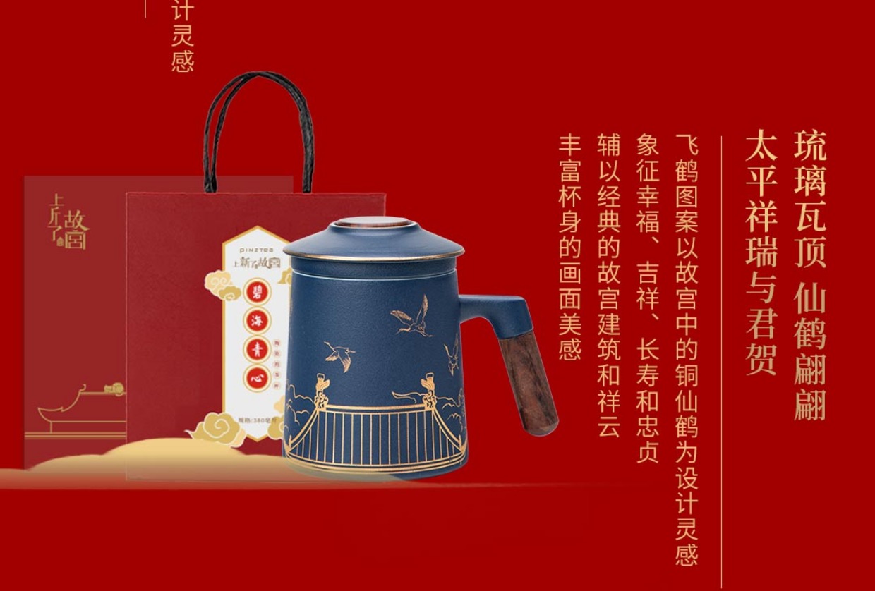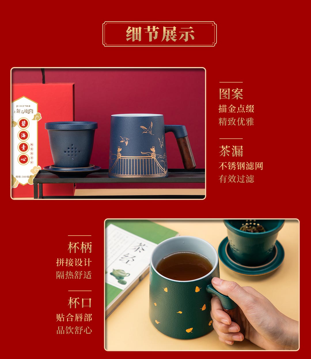 平仄上新了故宮文創杯子木柄陶瓷茶水分離高端泡茶杯送禮盒裝禮品