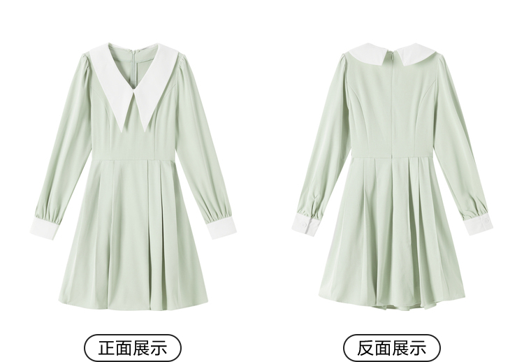 森馬連衣裙女撞色尖領百褶裙法式優雅溫柔春秋赫本風泡泡袖氣質