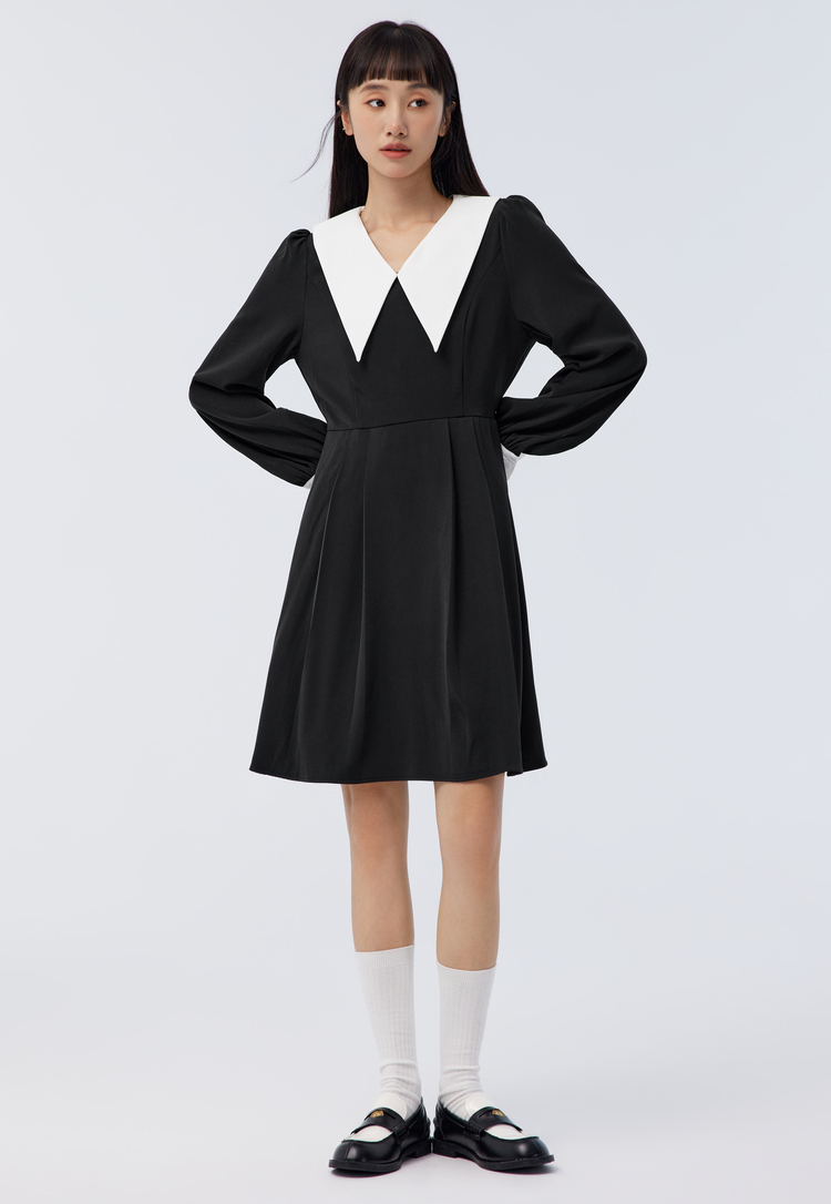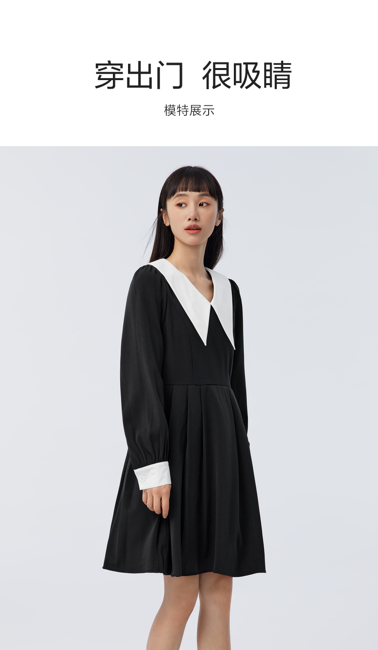 森馬大翻領純色少女感甜美連衣裙