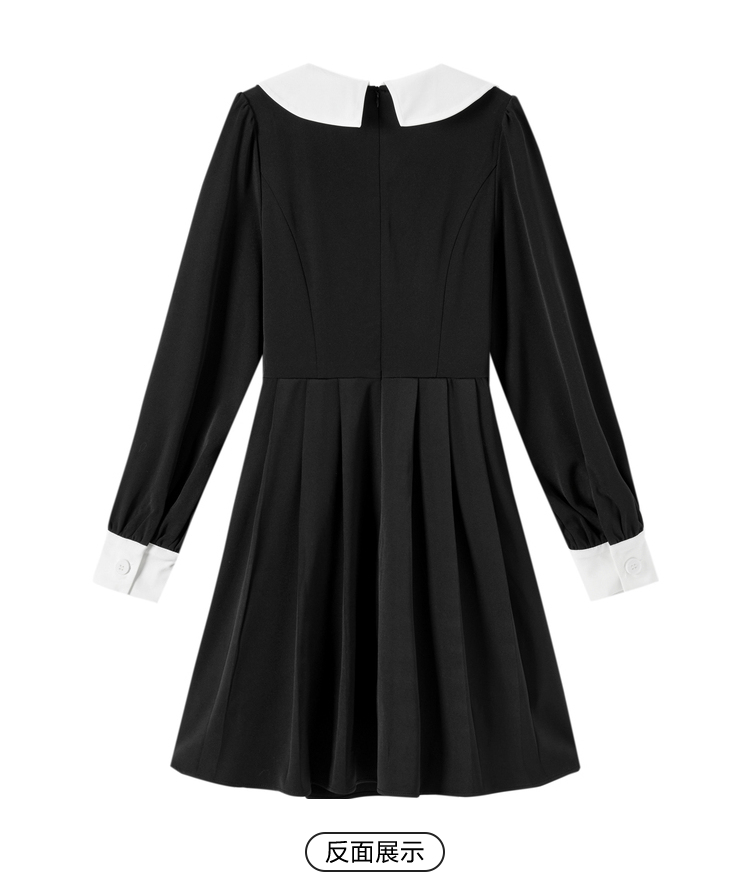 森馬連衣裙女中長款撞色娃娃領法式絲絨裙清倉冬季新款收腰小黑裙
