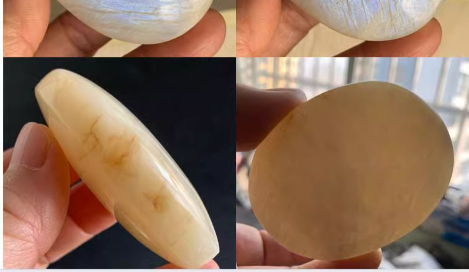 水玉冰魄天然月光石隨形把玩 月長石 藍光 扁片肥皂片手把件 原石