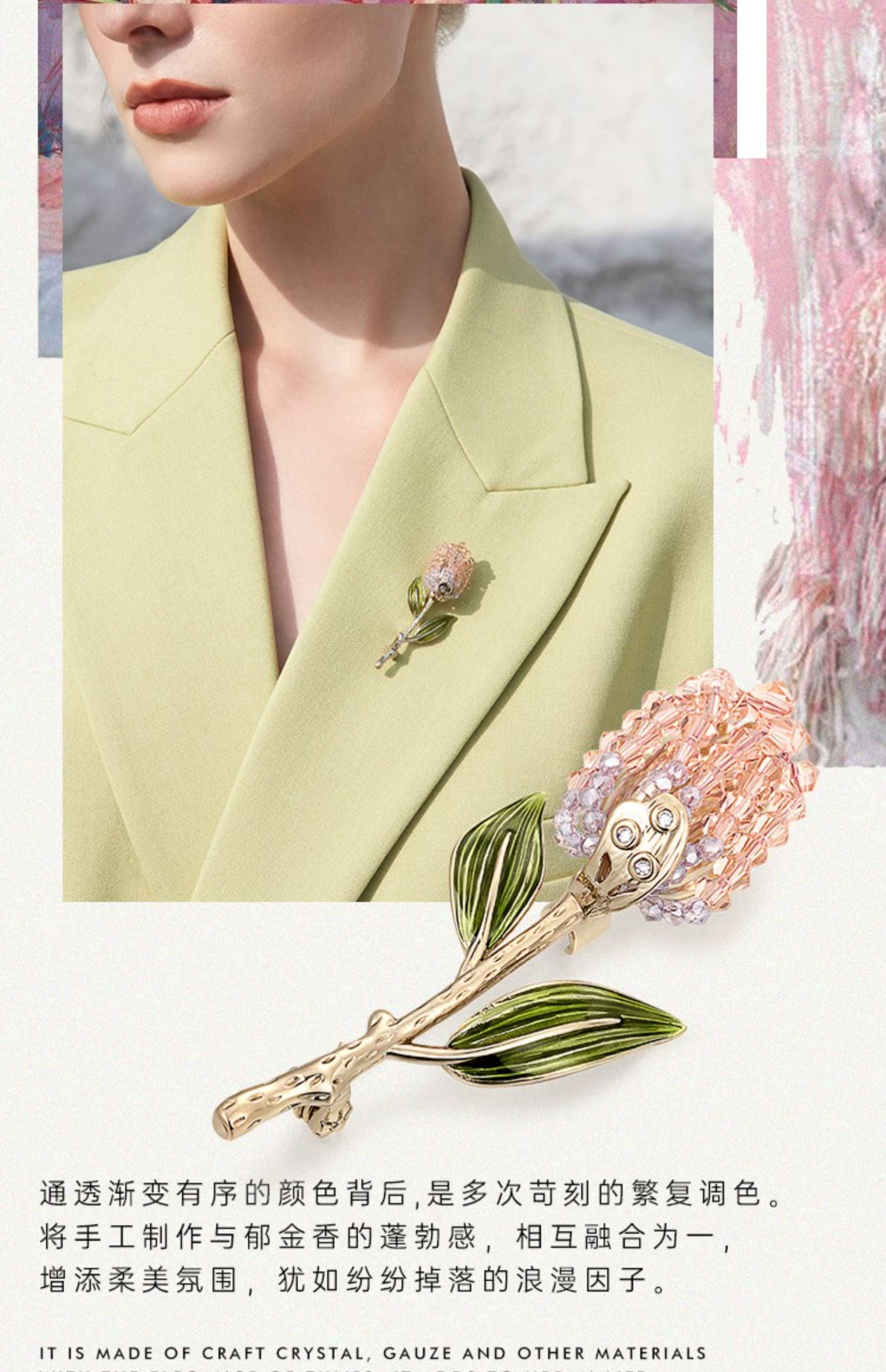 shes茜子鄉間綠野原創清新滴油花簇胸針大號胸花輕奢小眾別針配飾
