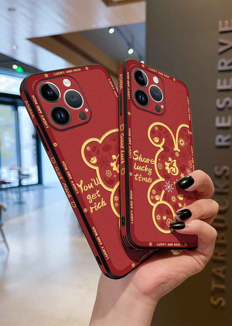 碎花好運小兔適用蘋果14promax手機殼新年iPhone13pro過年女款iP12可愛新款高檔紅色11全包14plus創意防摔套