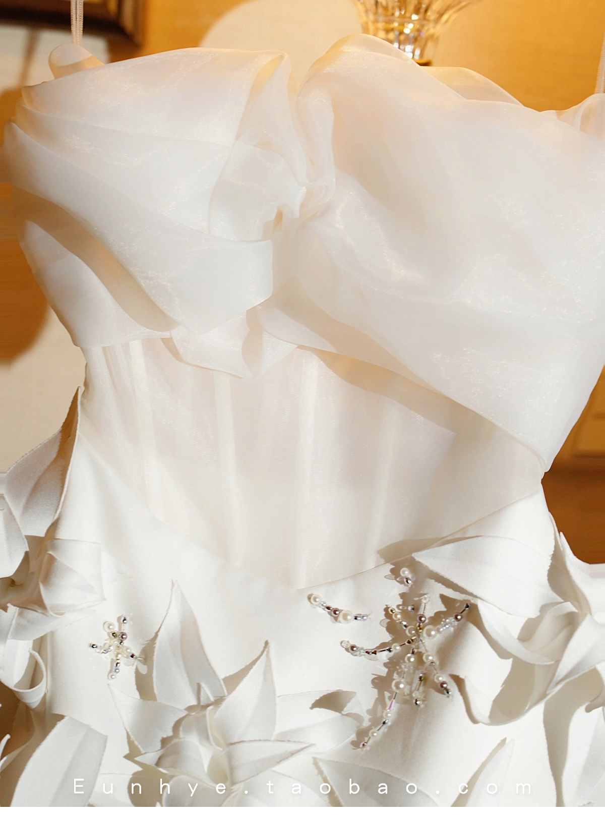 越南小眾LA REINE 2023新年新款水鉆吊帶純白色飄逸生日禮服裙