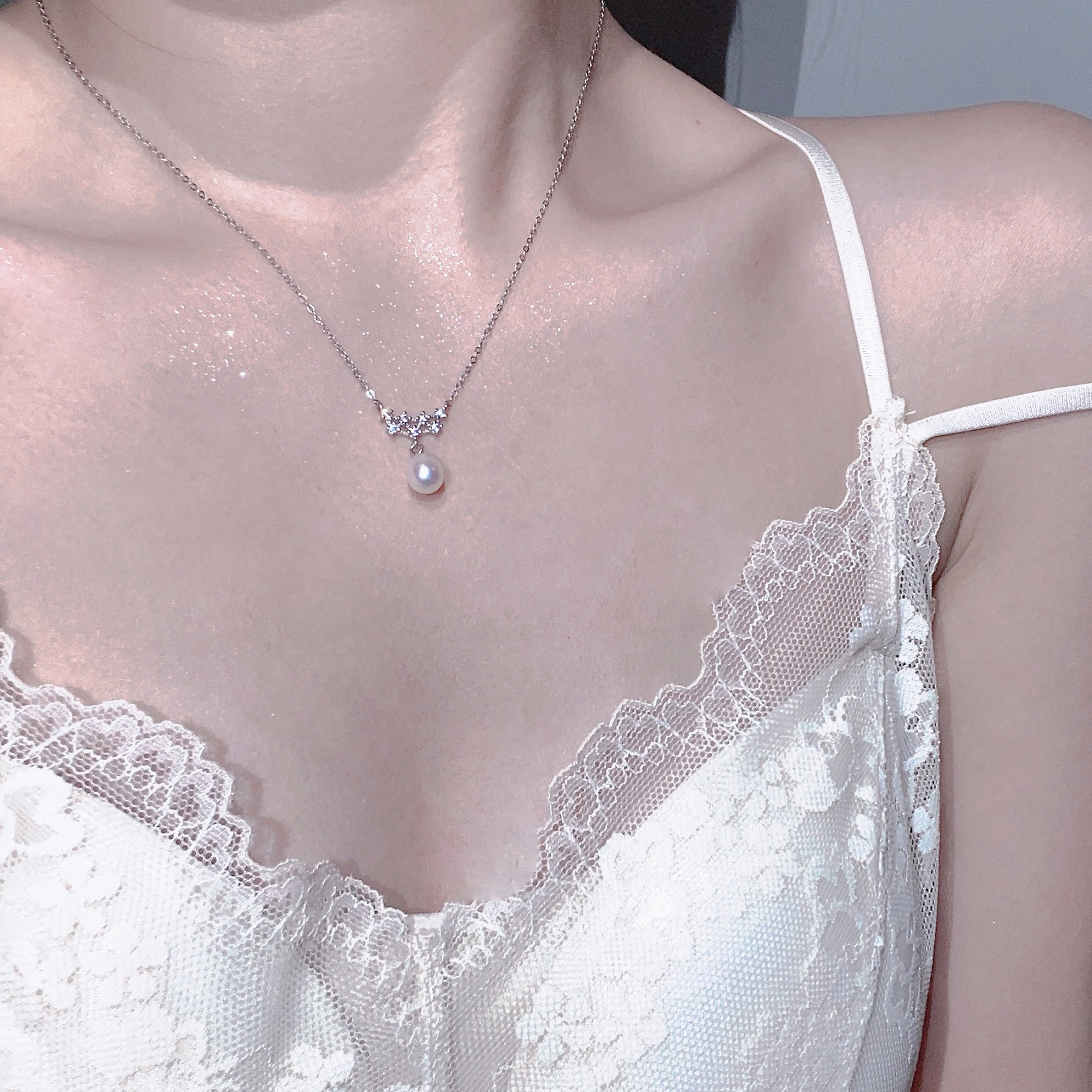 「一眼留戀」山茶花珍珠女純銀鎖骨鏈