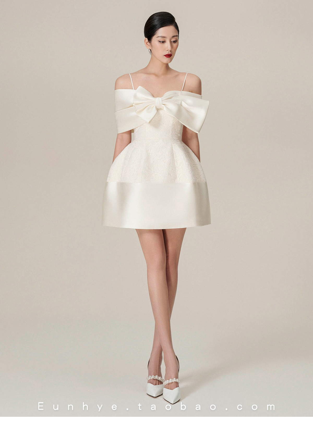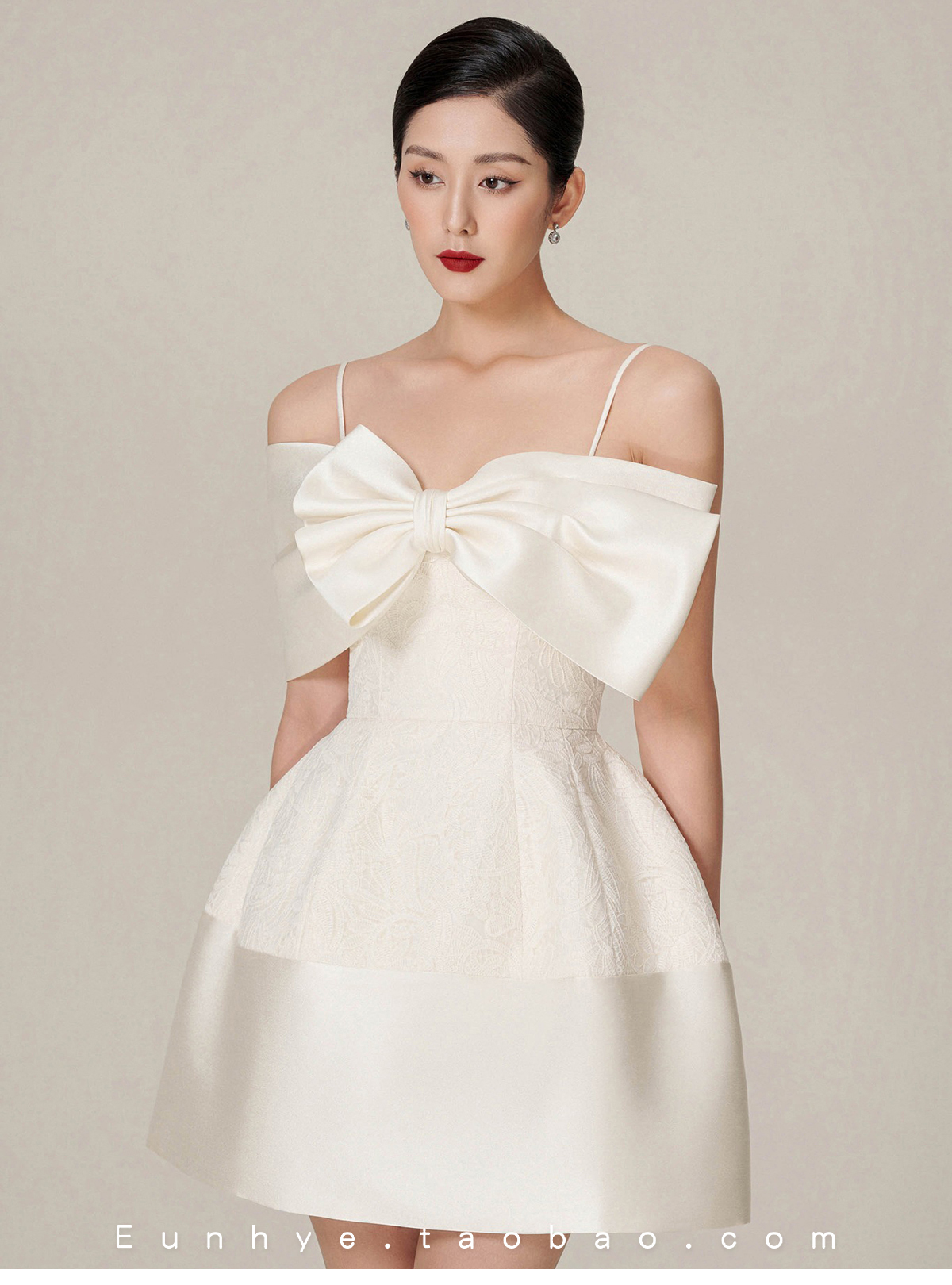 越南小眾品牌DEJA VU 2022冬季新款貴氣千金蝴蝶結單包肩吊帶裙