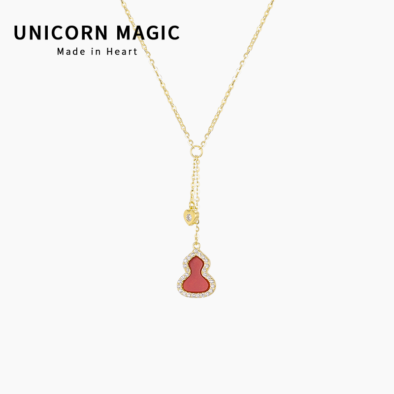 2023本命年紅色麒麟葫蘆女鎖骨項鏈