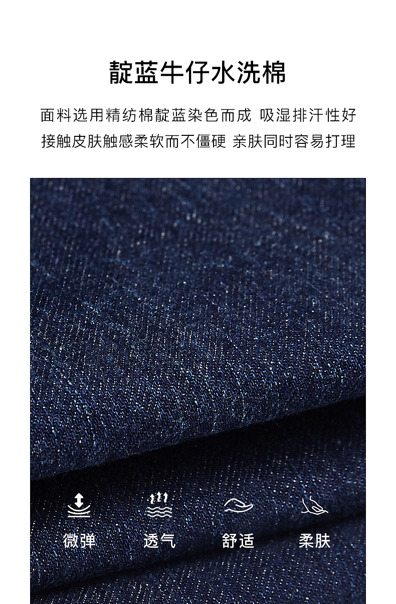 Basic House/百家好深藍色復古牛仔連衣裙女2023早秋新款氣質收腰