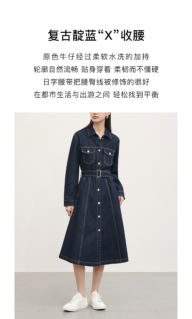 EF復古收腰牛仔裙設計感腰帶搭配收腰顯瘦連衣裙