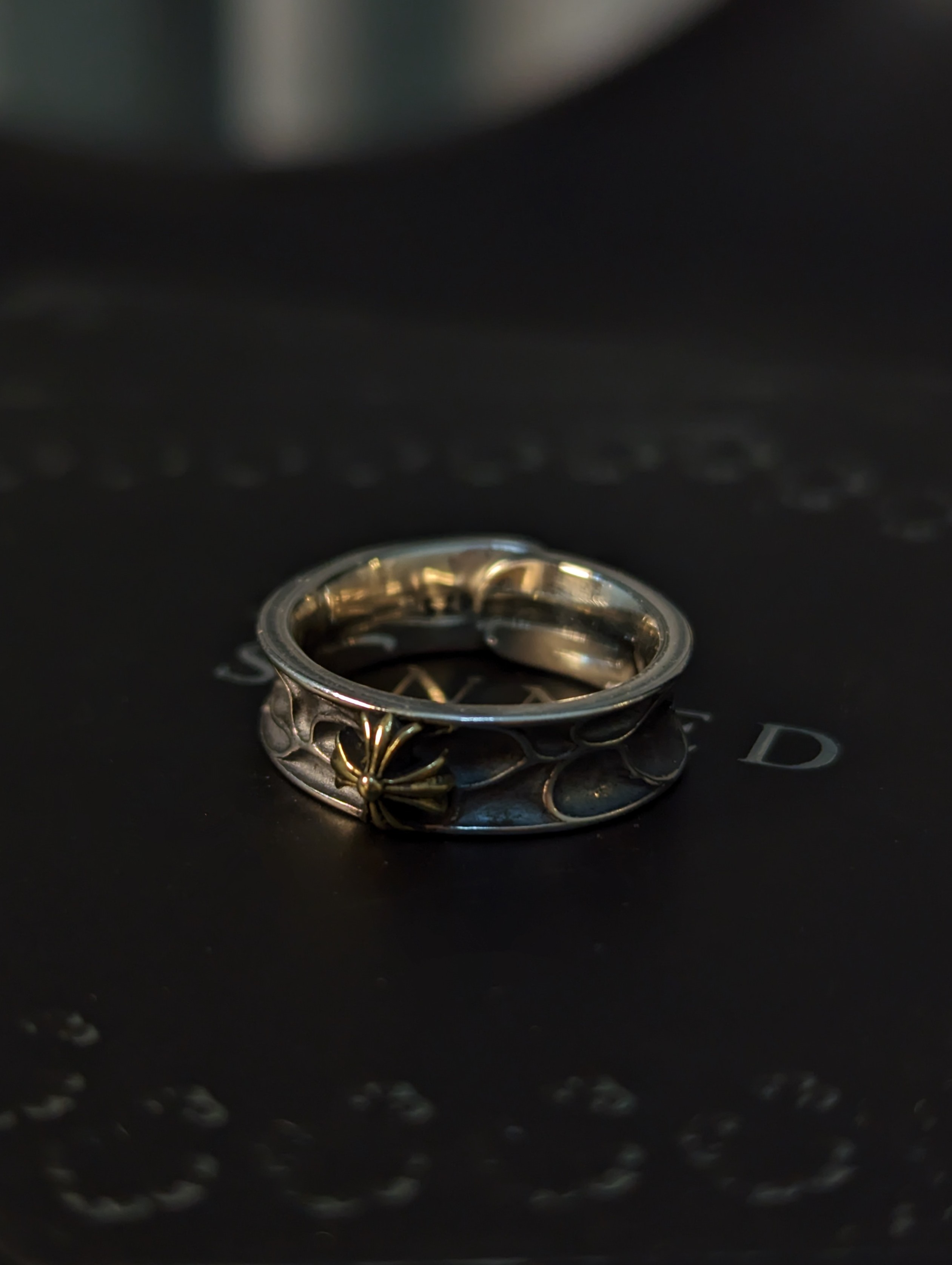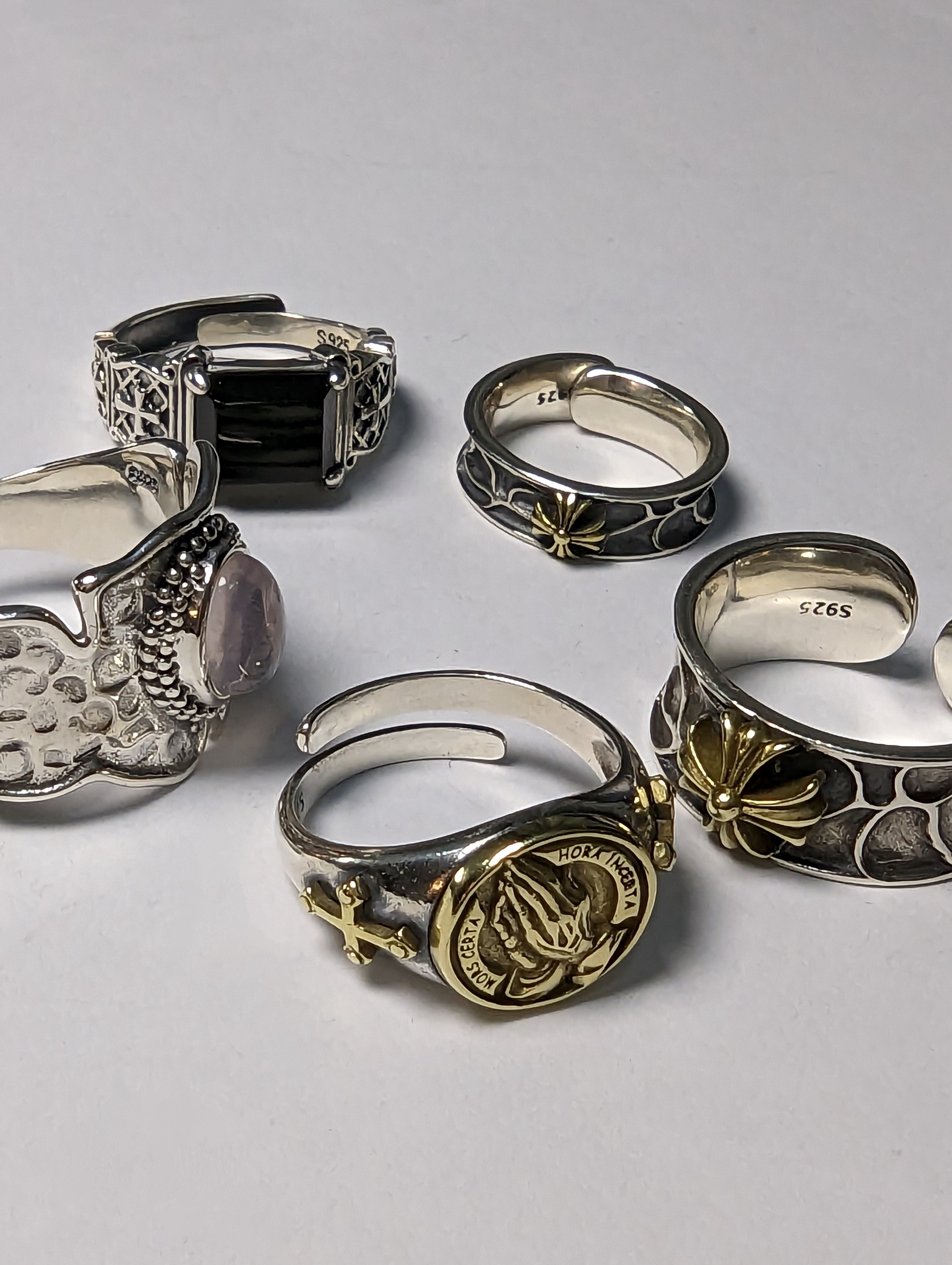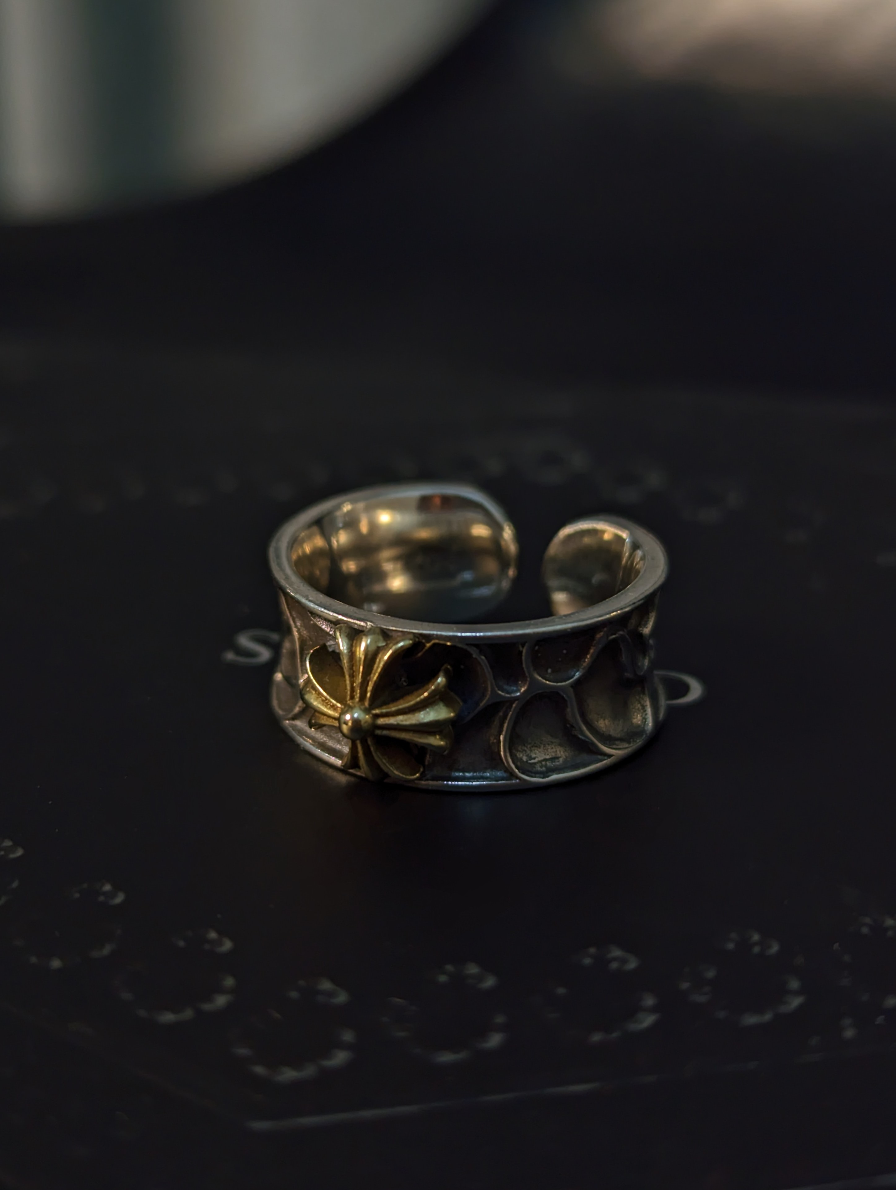 SINNED 純銀925銀 十字架鳶尾花開口戒指 冷淡風高級感中性男女