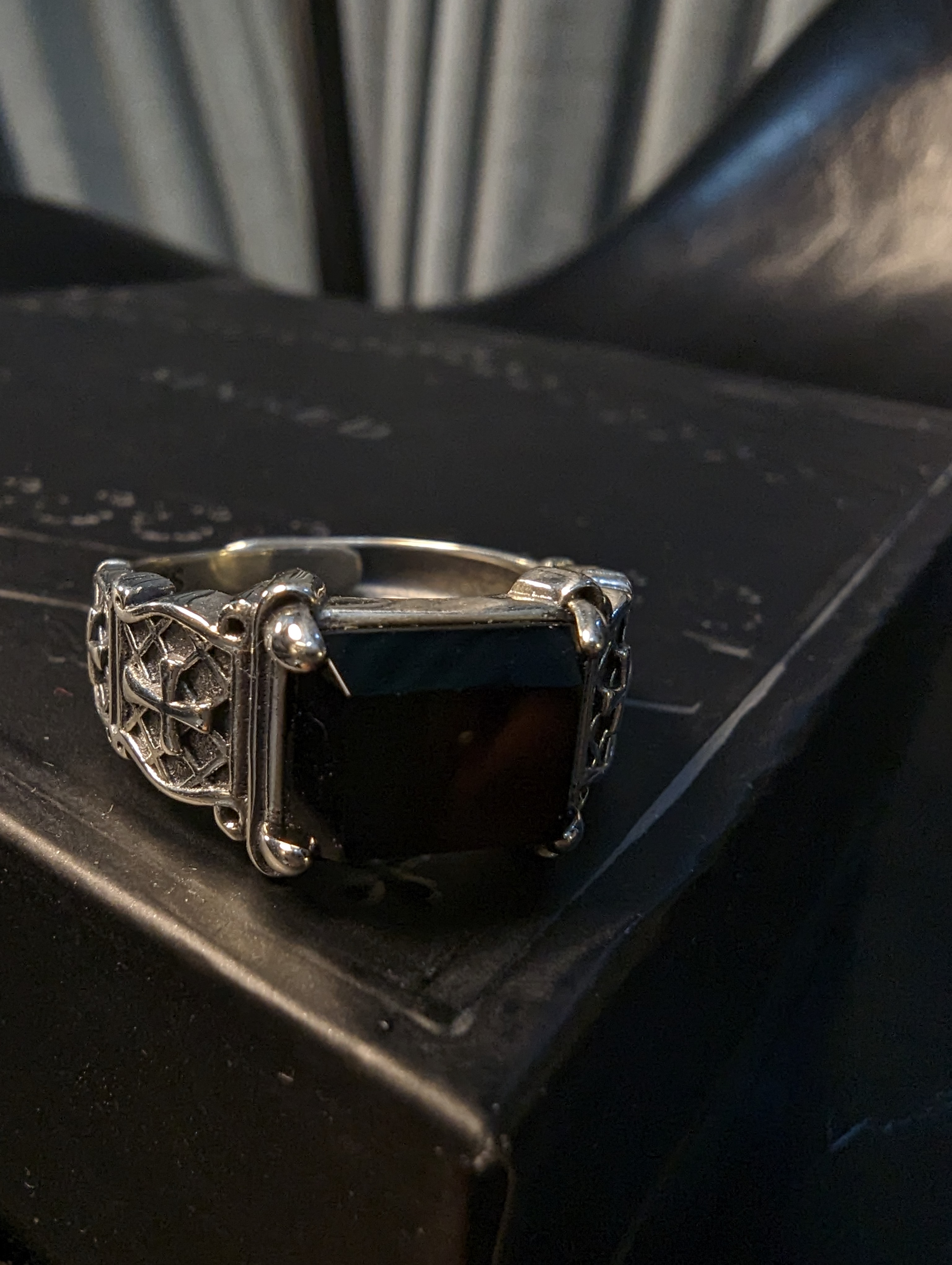 Almighty ALM Devil Skull 惡魔骷髏寶石純銀戒指 復古鍍金尾戒