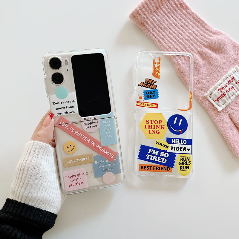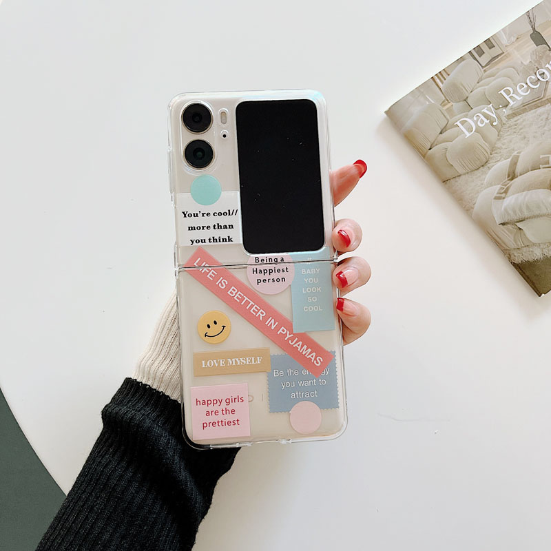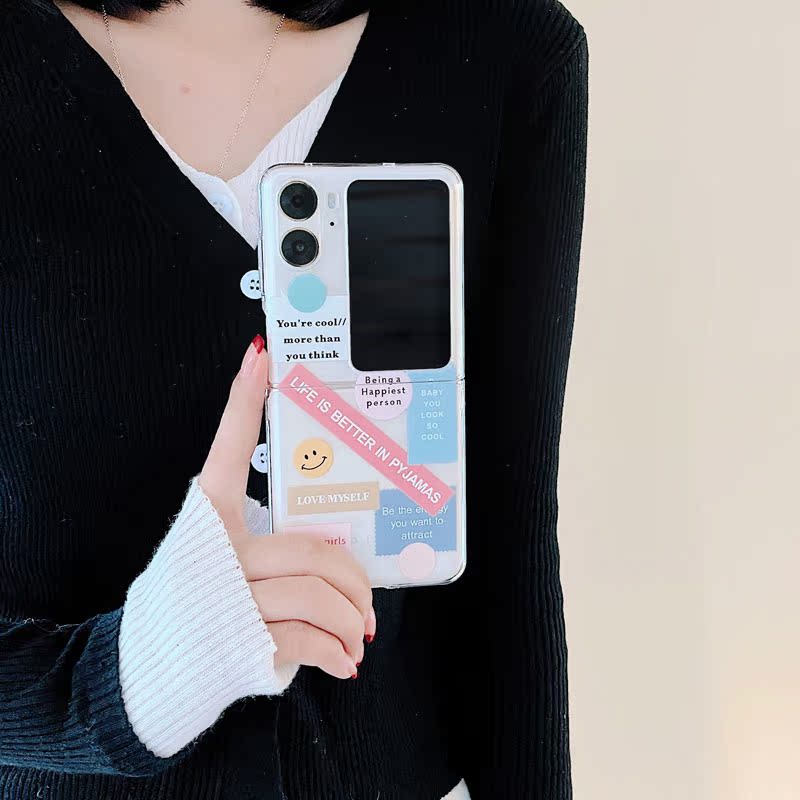適用oppofindn3flip手機殼可愛卡通透明ins英文笑臉標簽保護套簡約韓風套find n2flip折疊屏n2硬少女風個性3