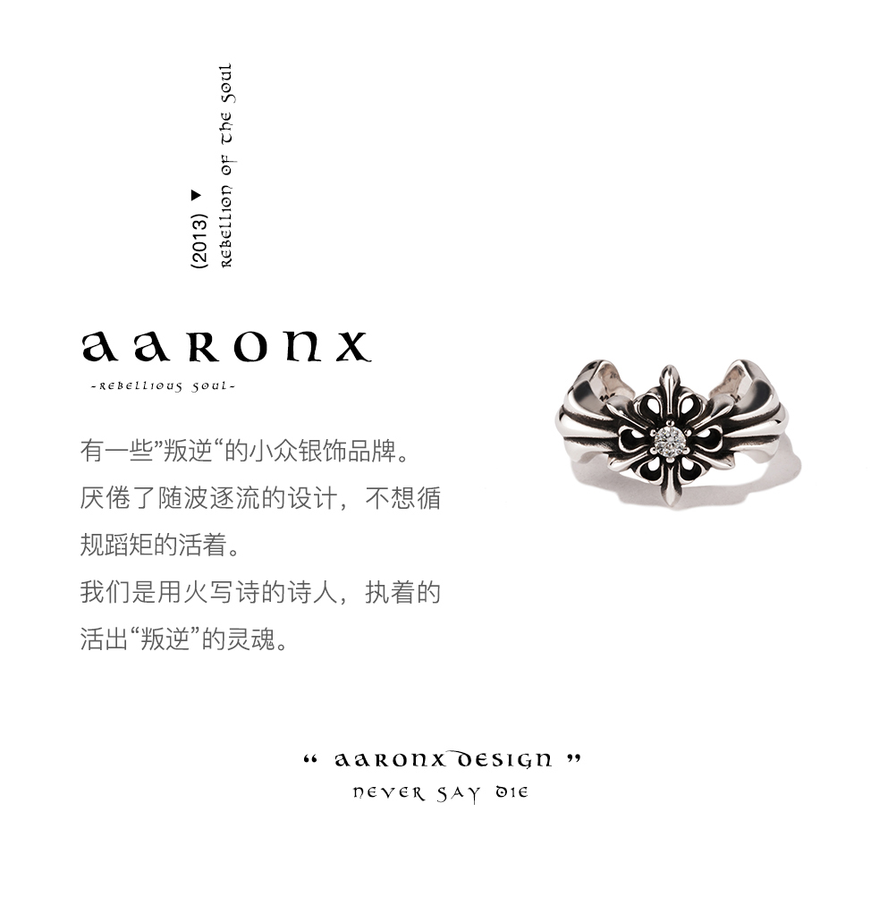 aaronx新品設計師原創六芒星閆桉同款鋯石925純銀做舊開口戒指