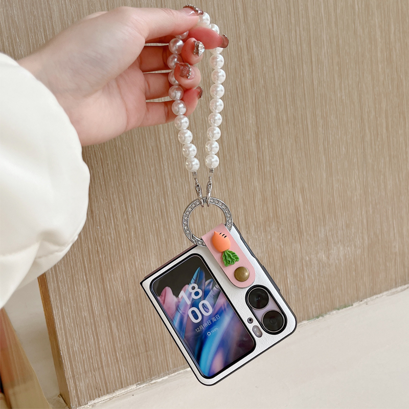 oppofindn2flip手機殼女新款個性奢華分體菱格純色適用于oppon2flip折疊屏保護殼珍珠鏈可斜跨防摔全包保護套