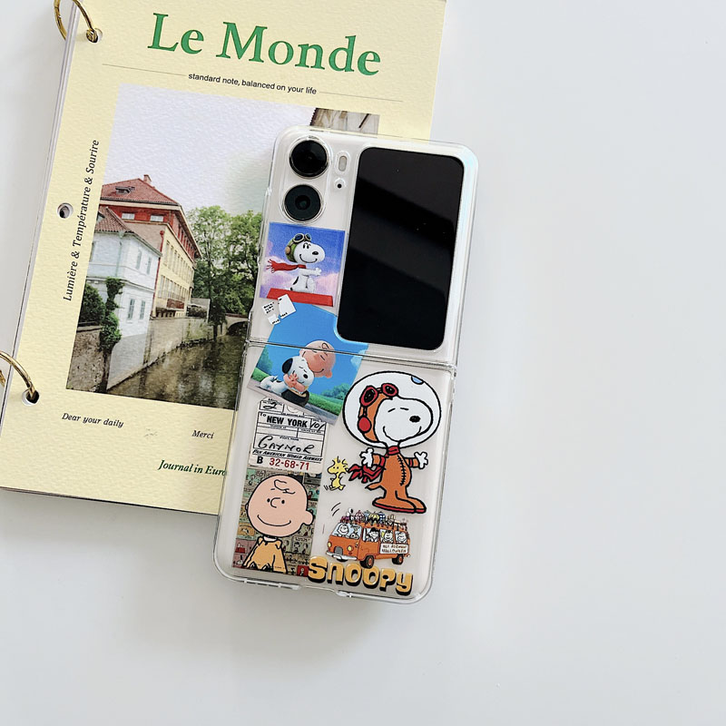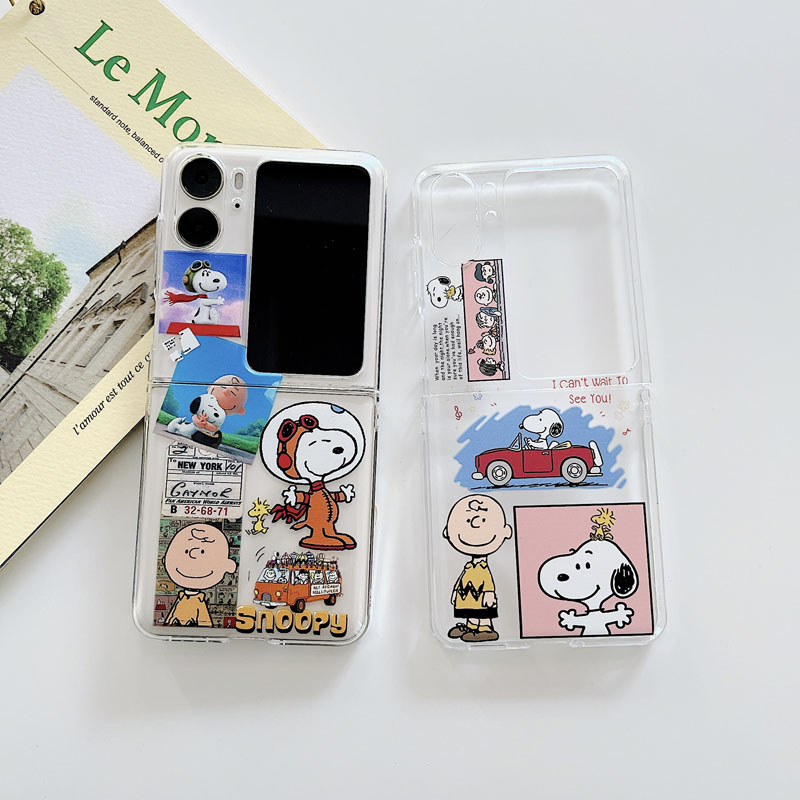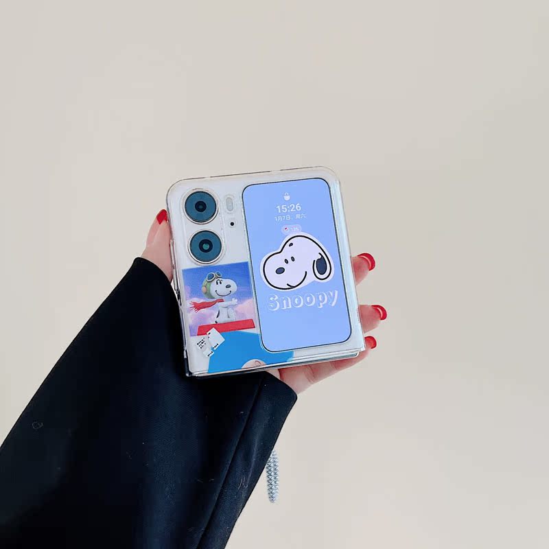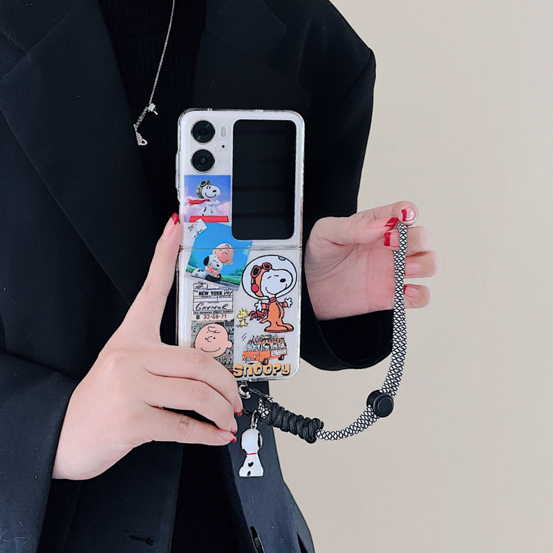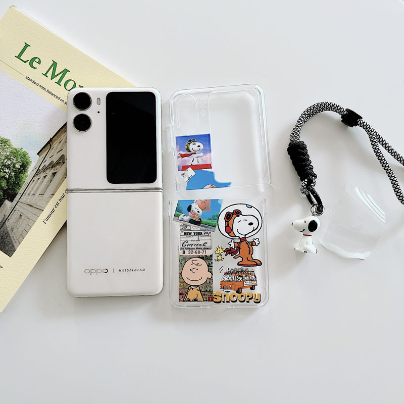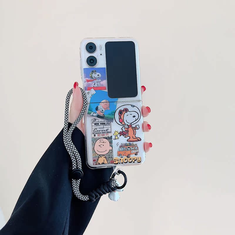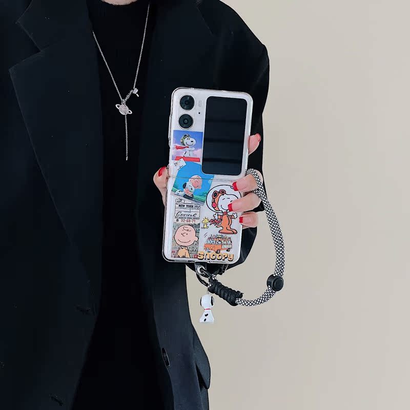 適用oppofindn3flip手機殼可愛卡通透明ins史努比狗保護套查理公仔短鏈編織手提繩套find n2flip折疊屏n2硬3