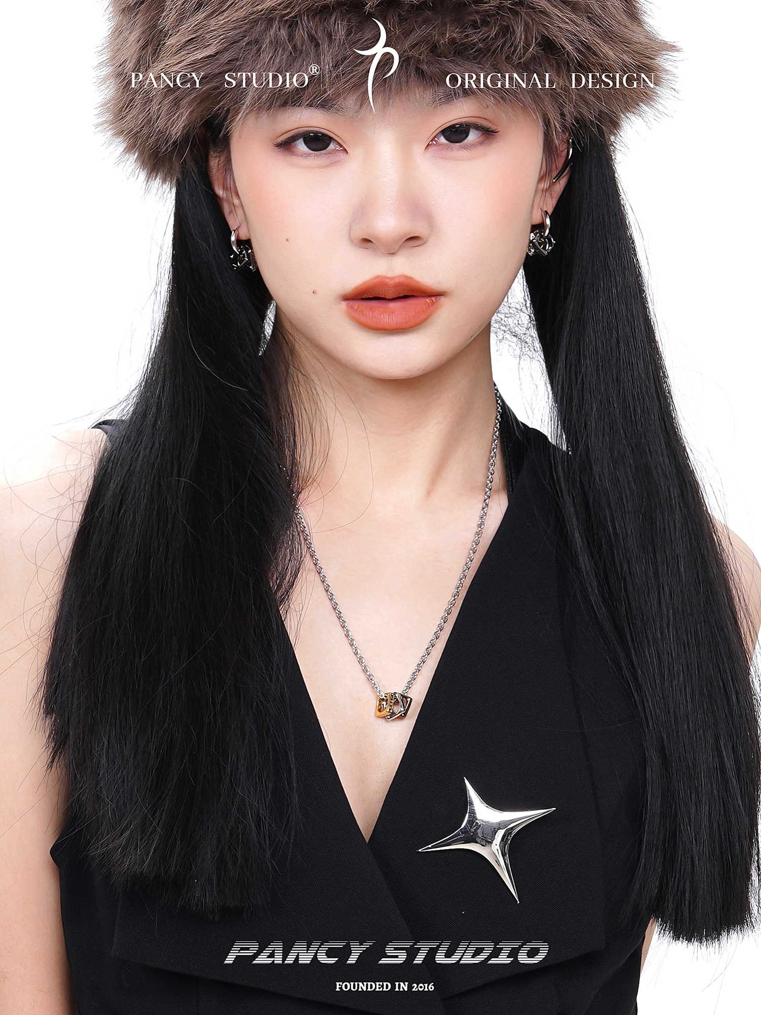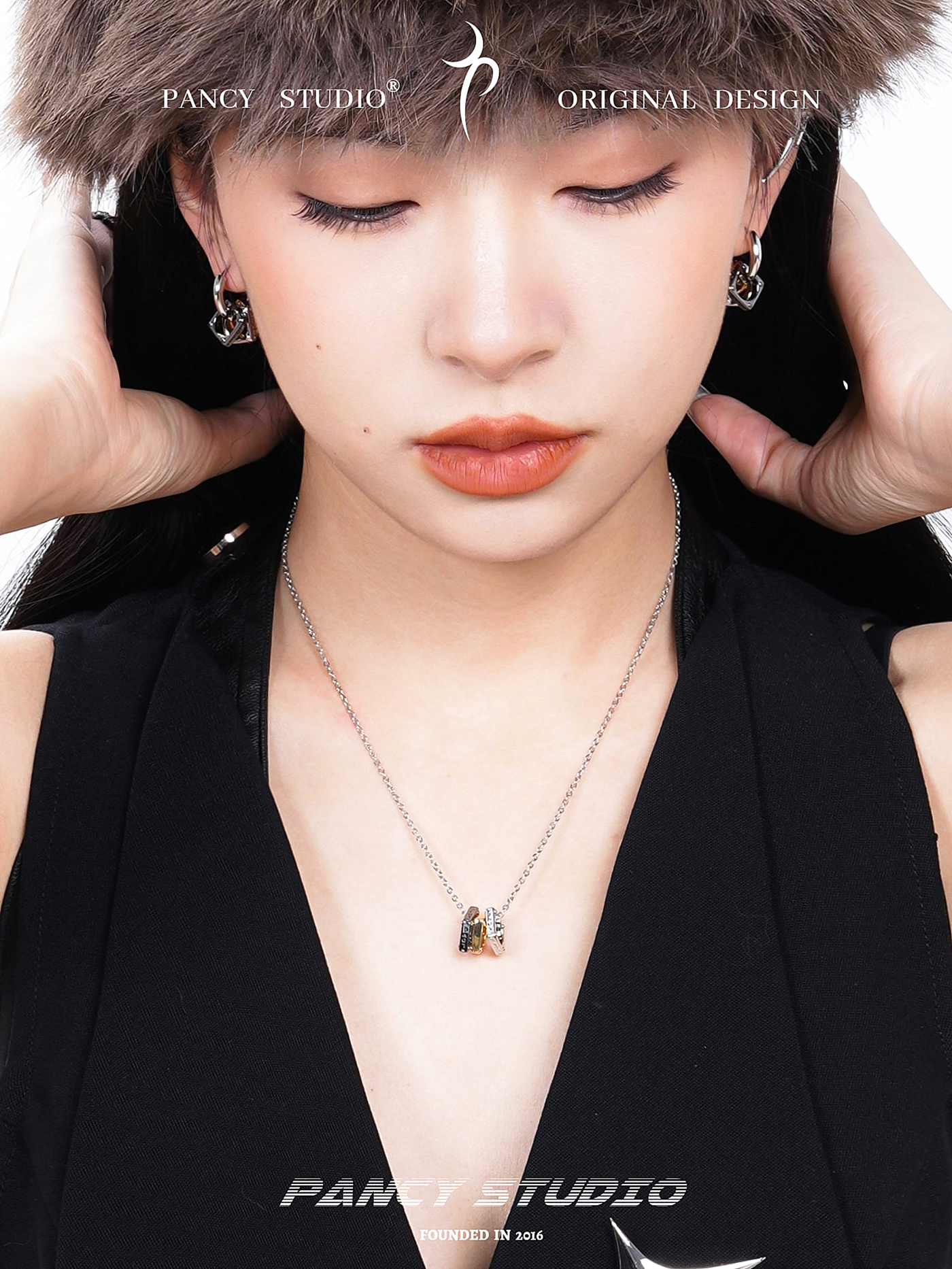 PANCY鉚釘朋克鈦鋼項鏈簡約個性暗黑頸鏈高級感鎖骨鏈男女情侶款