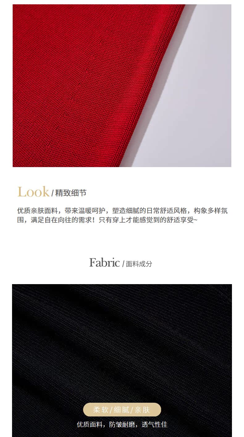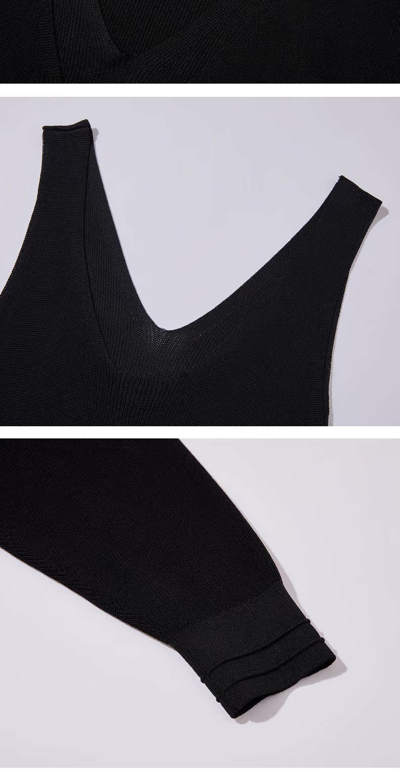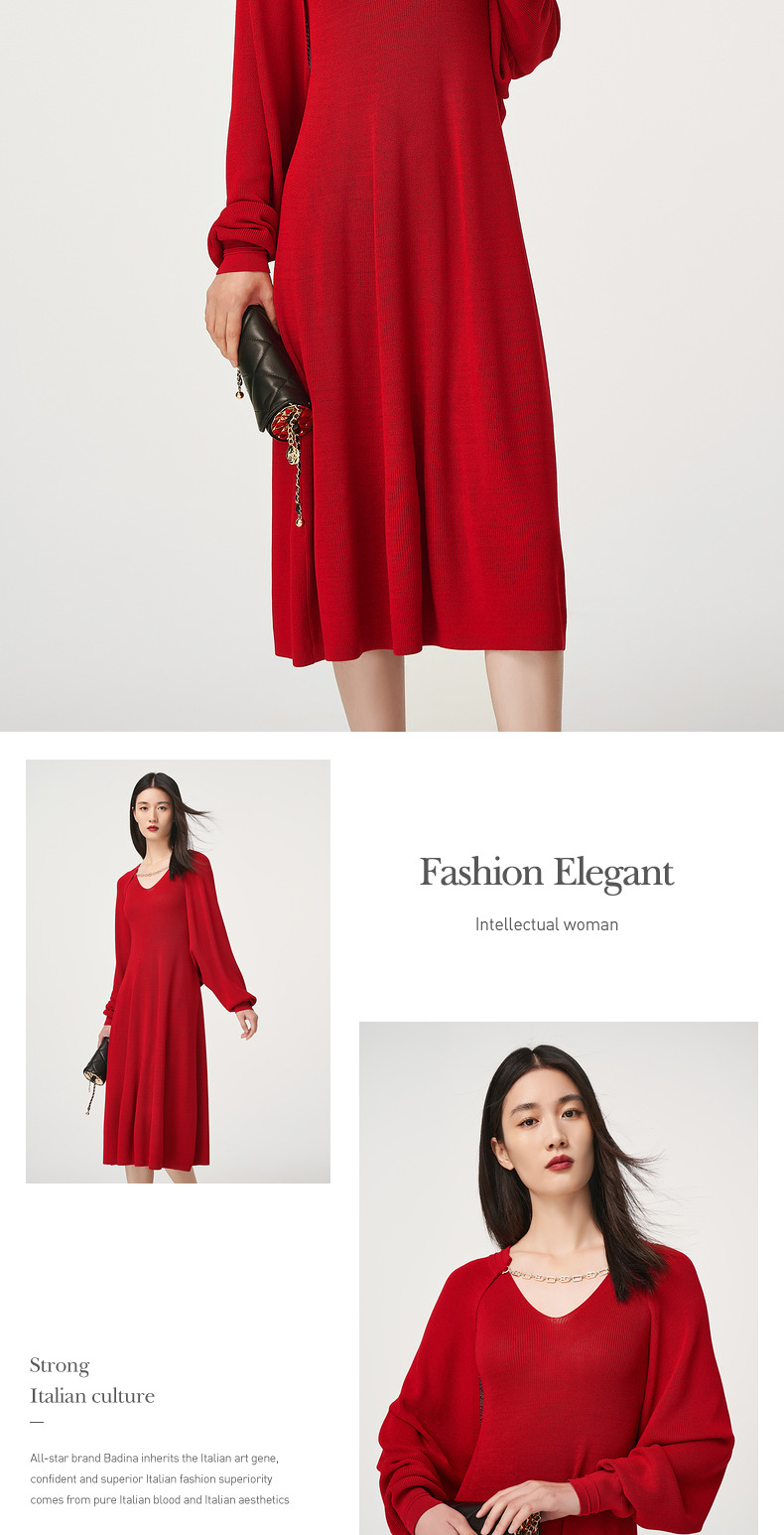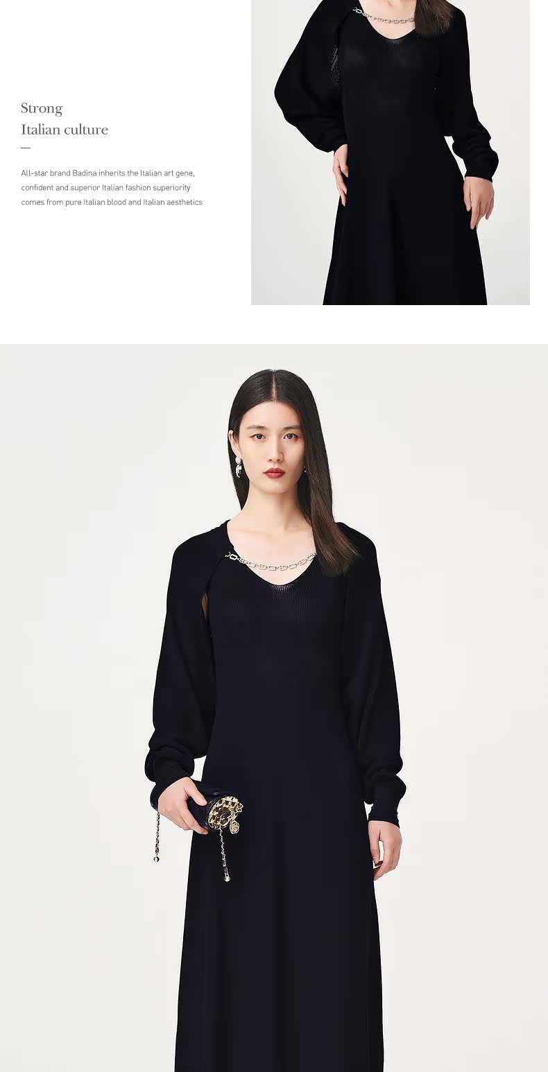 【專柜同款】秋冬優雅氣質V領長袖羊毛針織連衣裙