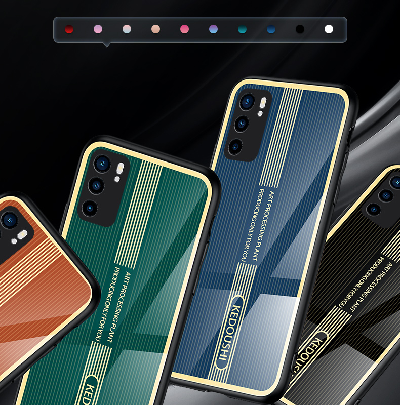 適用OPPORENO6手機殼鋼化玻璃opporeno6超薄金屬條紋PEQM00保護套全包邊防摔男女
