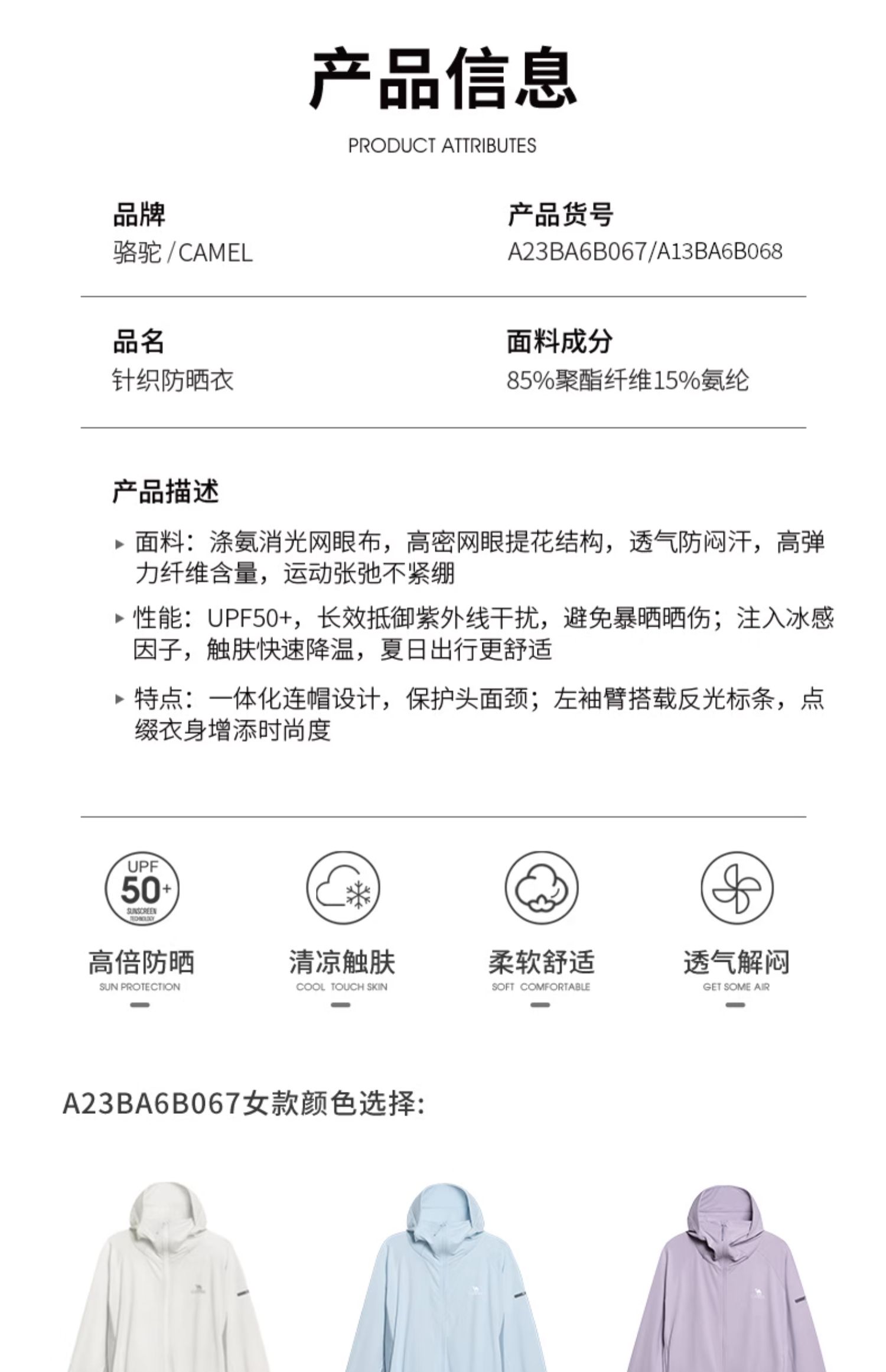 【黑膠】駱駝戶外2023春夏新款防曬衣