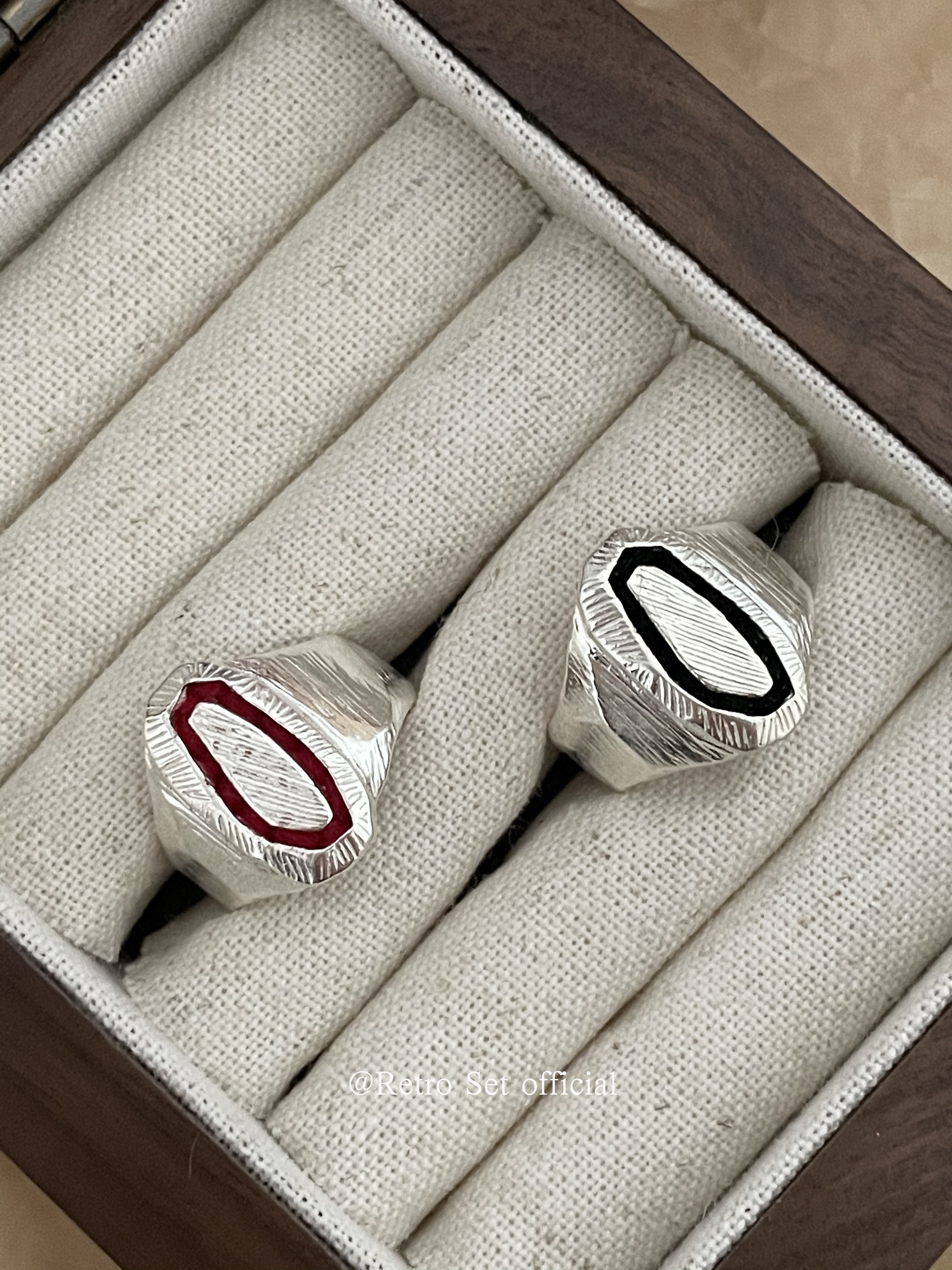 新年系列韓國小眾設計師款ae__橢圓復古多邊形毛線拼接戒指925銀