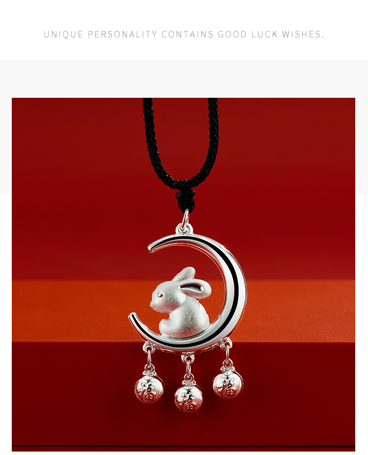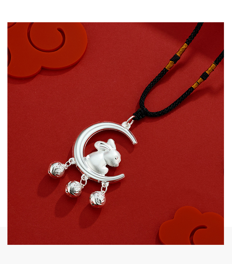 順欽銀樓S999純銀項鏈女月亮兔吊墜足銀鎖骨鏈七夕送女友紀念禮物