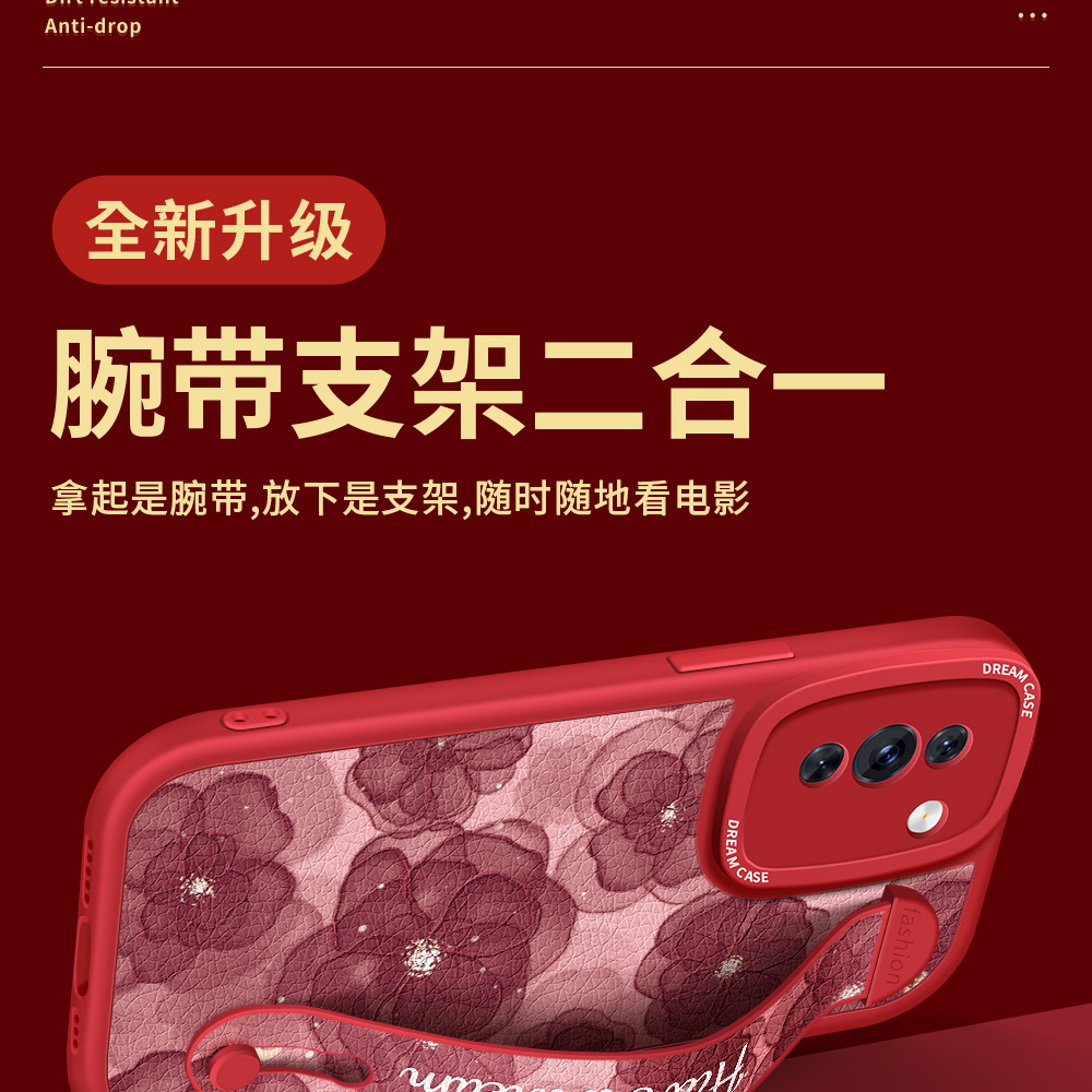 波紋油畫花腕帶支架適用iphone13蘋果14手機殼11斜挎繩XSXR華為P50nova7榮耀80女vivoX60oppoReno9小米10軟殼