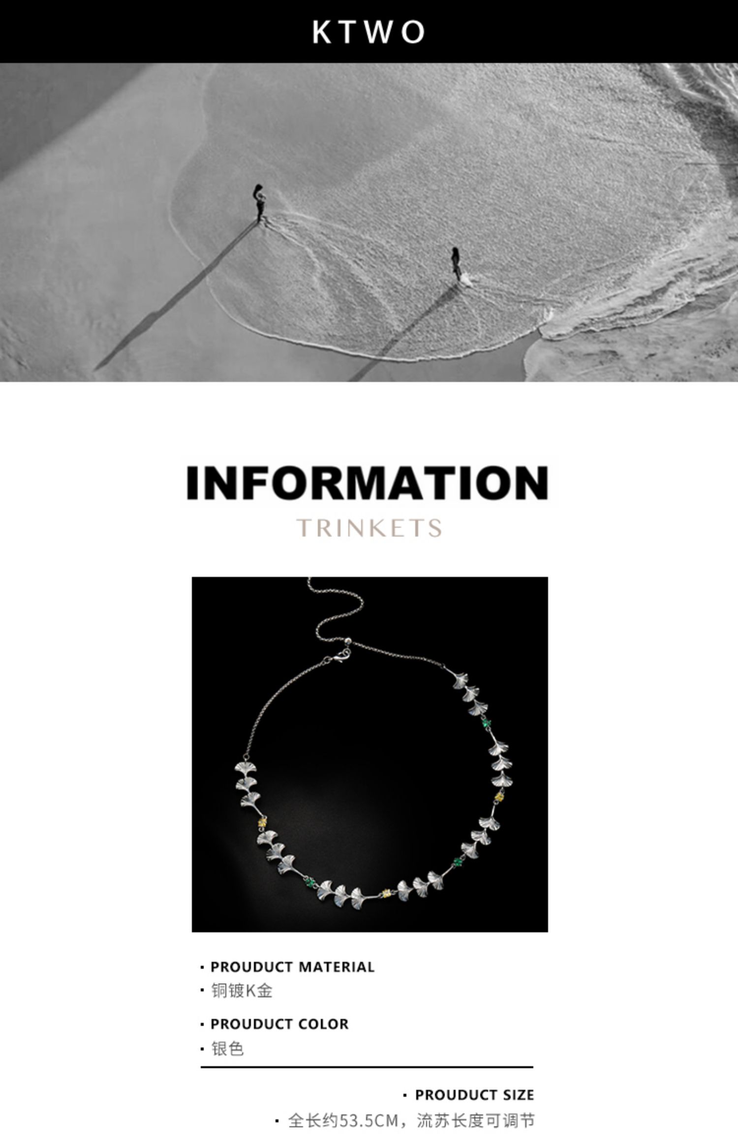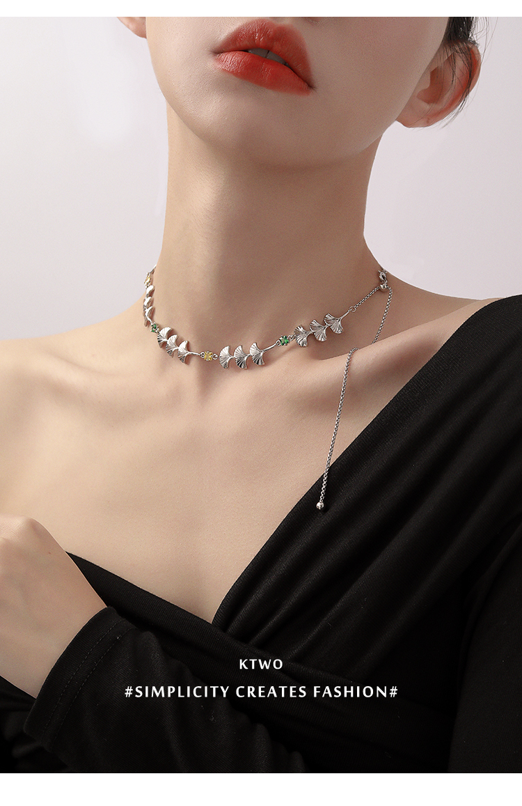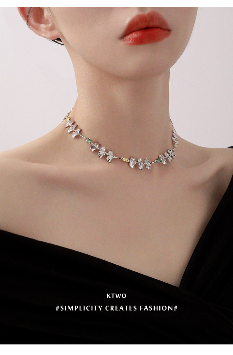銀杏葉項鏈女高級設計感拼接鋯石小眾輕奢百搭新款鎖骨鏈頸鏈飾品